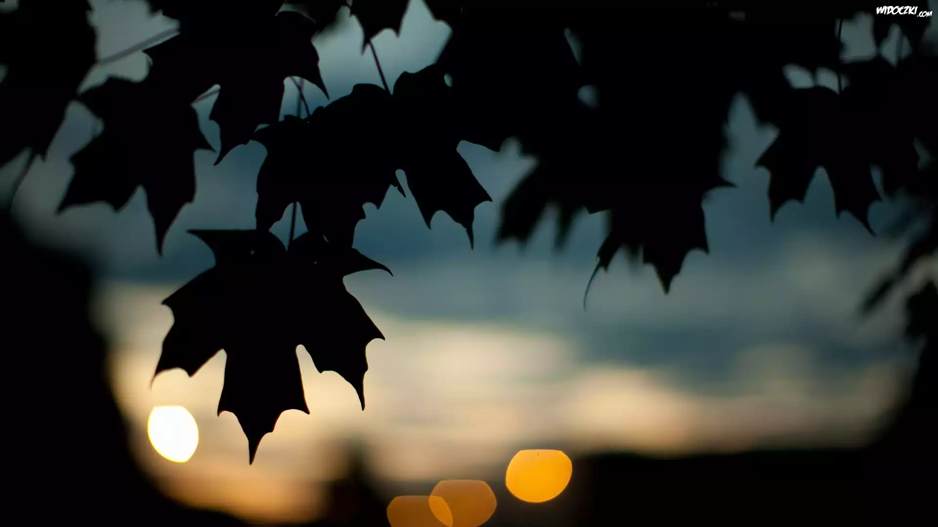 Zdjęcia, Zachód, Słońca, Liście, Klonu
