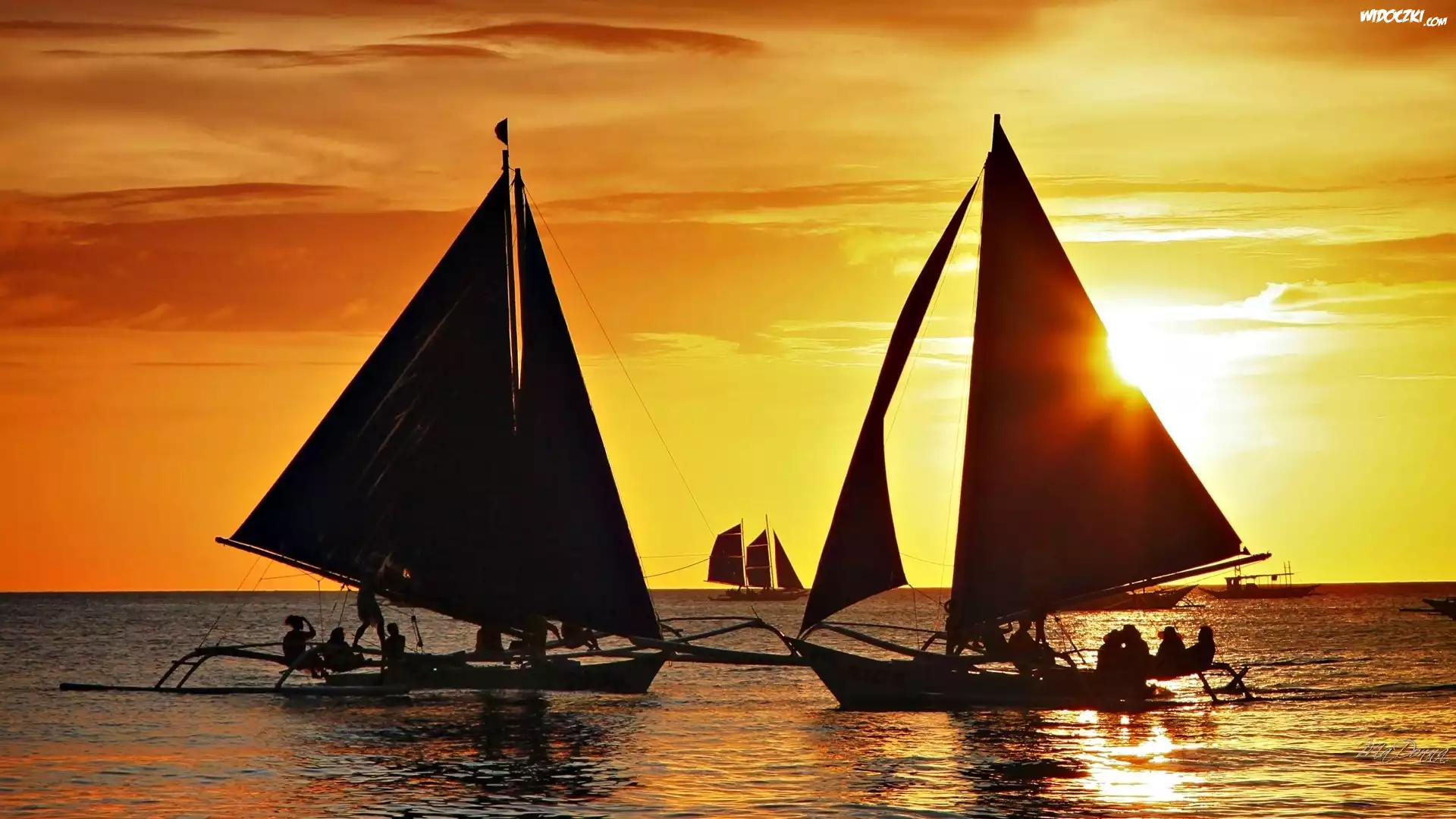 Zdjęcia, Zachód Słońca, Żaglówki, Morze