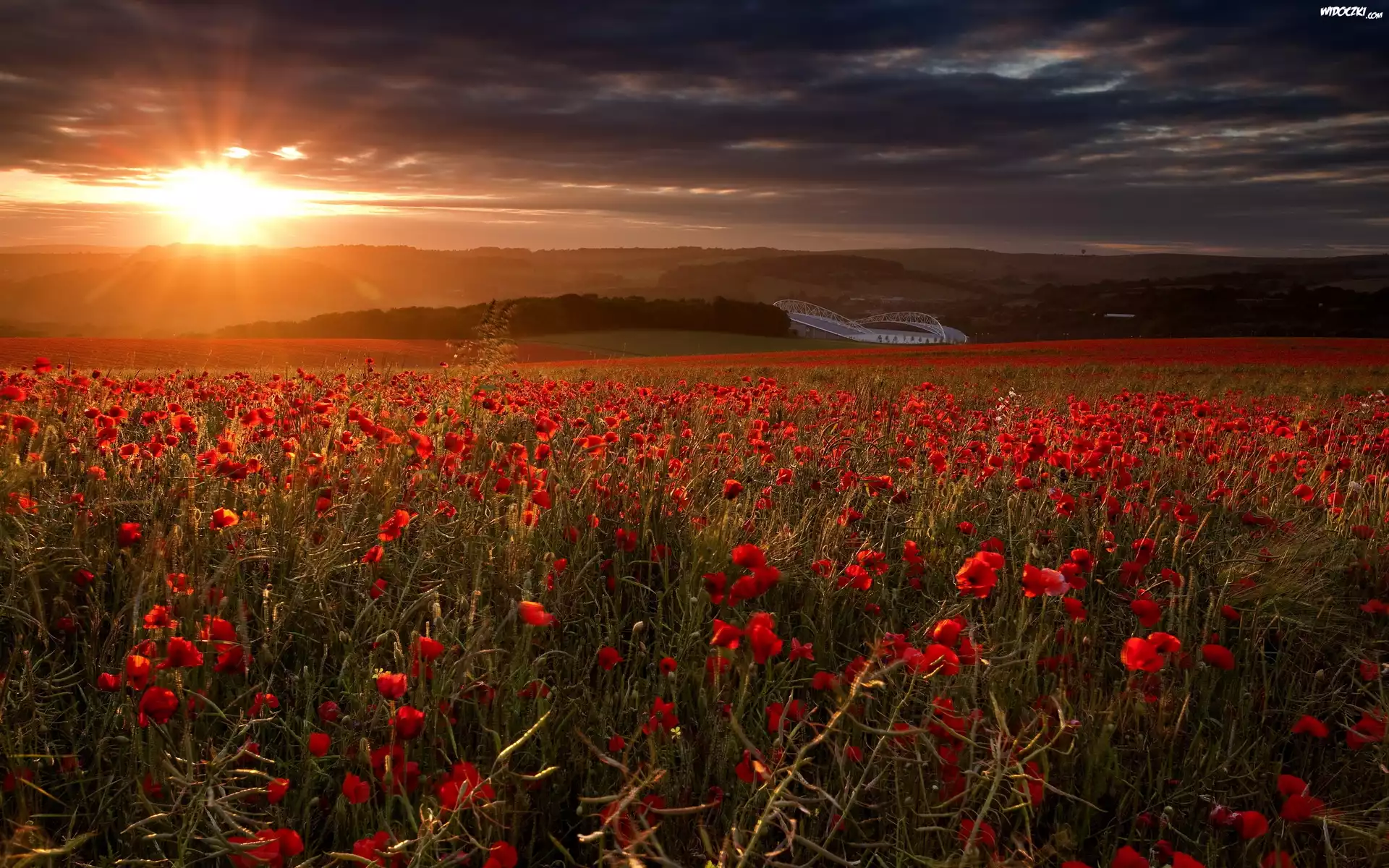 Zdjęcia, Zachód, Słońca, Promienie, Makowe, Pola