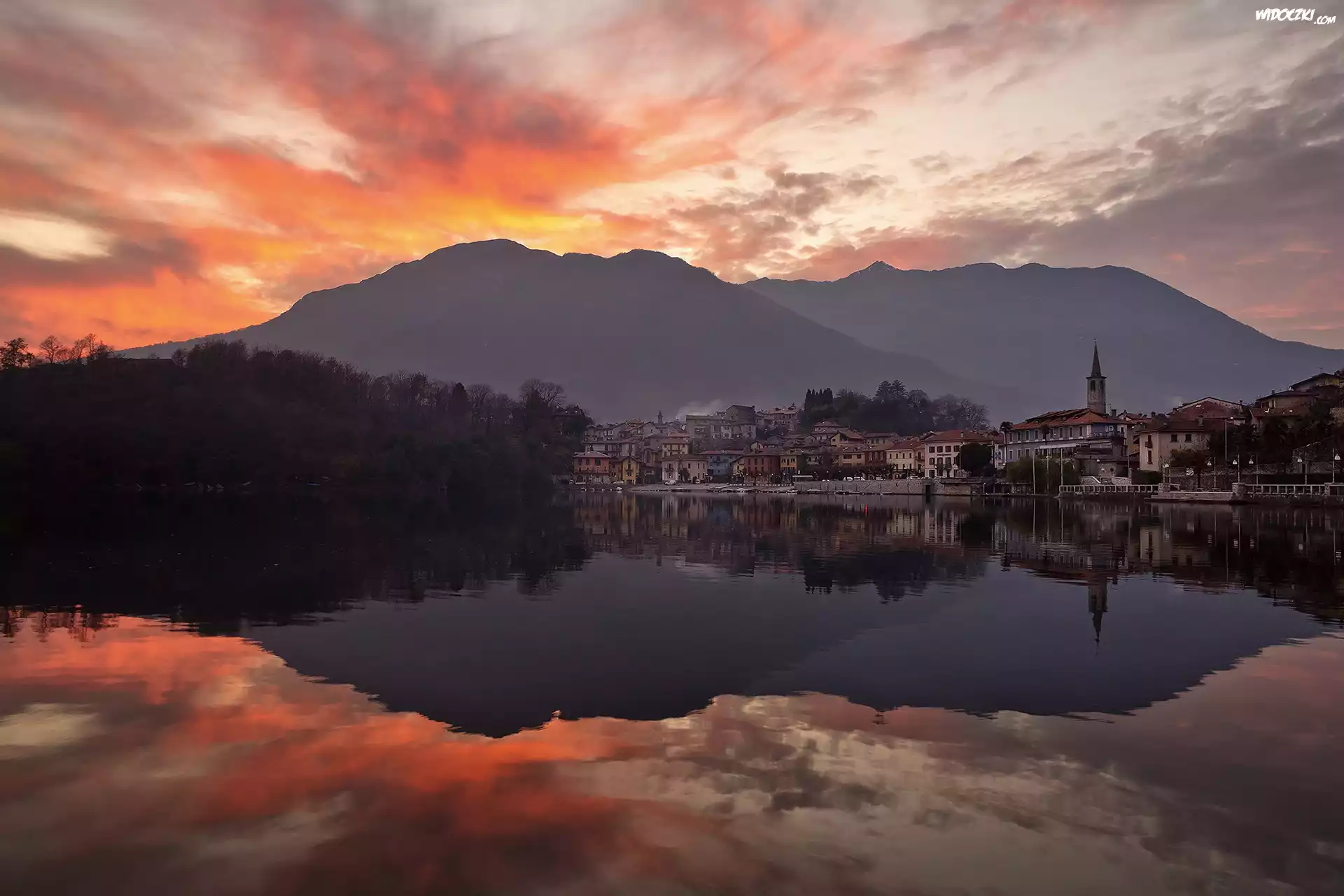 Zdjęcia, Zachód, Słońca, Jezioro, Miasto, Mergozzo, Włochy