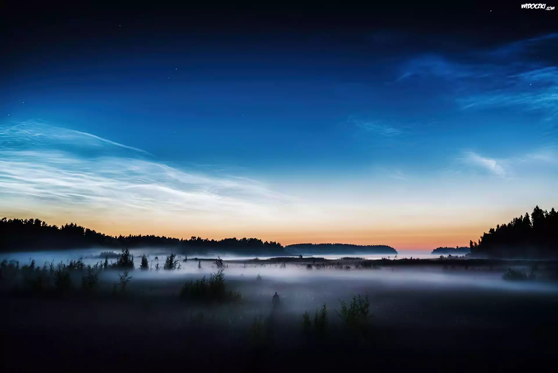 Zdjęcia, Zachód, Słońca, Mgły, Lasy