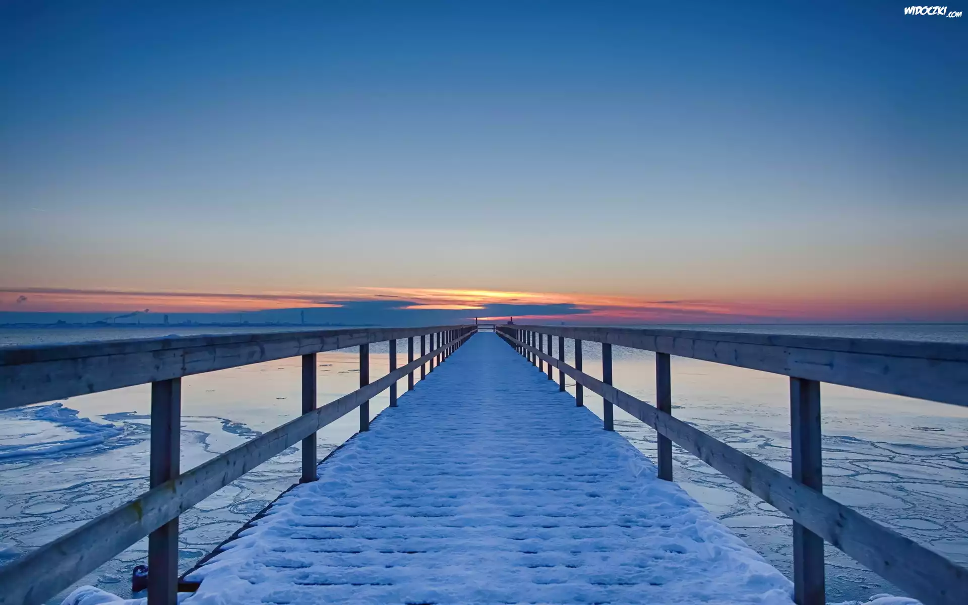 Zdjęcia, Zachód Słońca, Morze, Molo, Zima