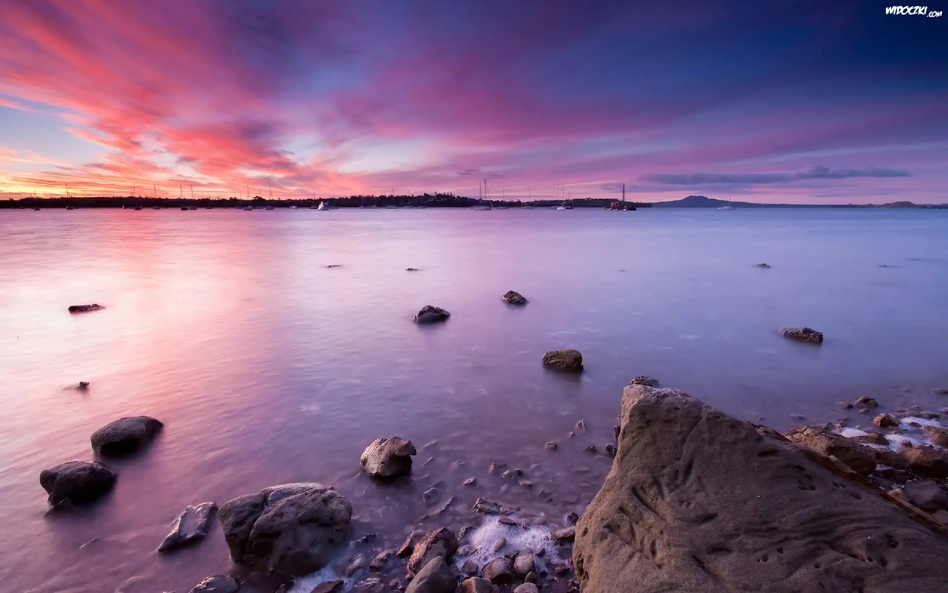 Zdjęcia, Zachód Słońca, Lato, Morze, Skały