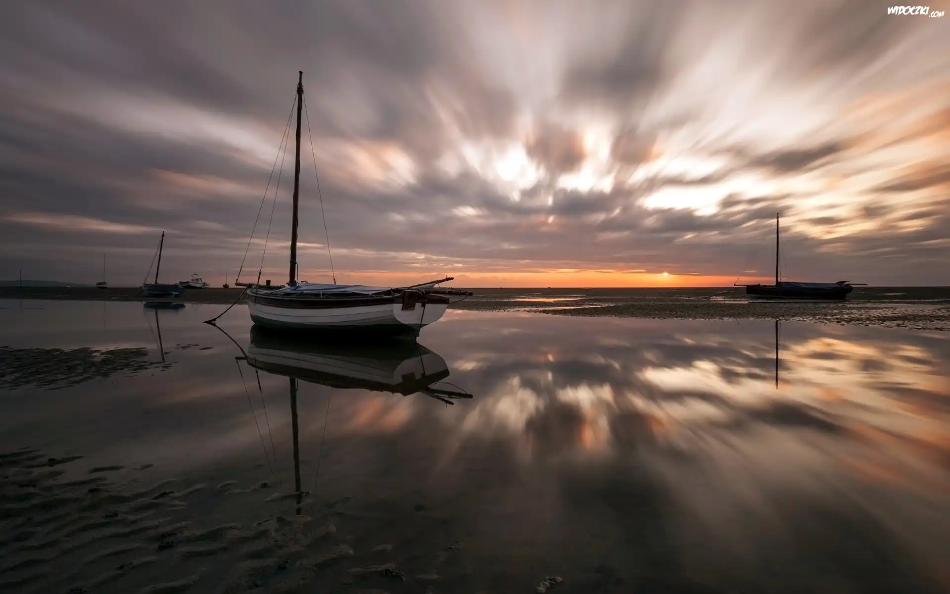 Zdjęcia, Zachód słońca, Morze, Żaglówki