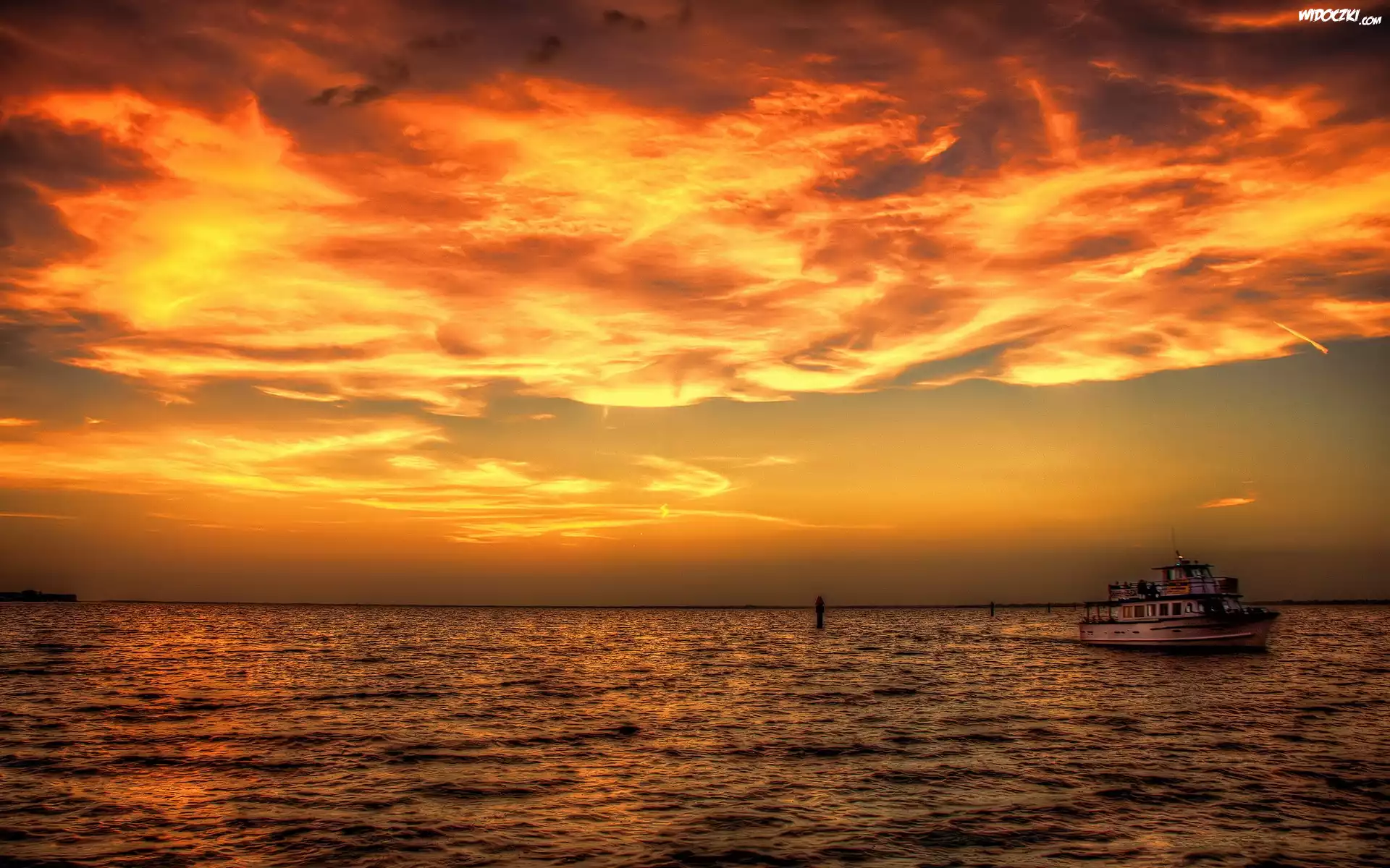 Zdjęcia, Zachód, Słońca, Morze, Barka