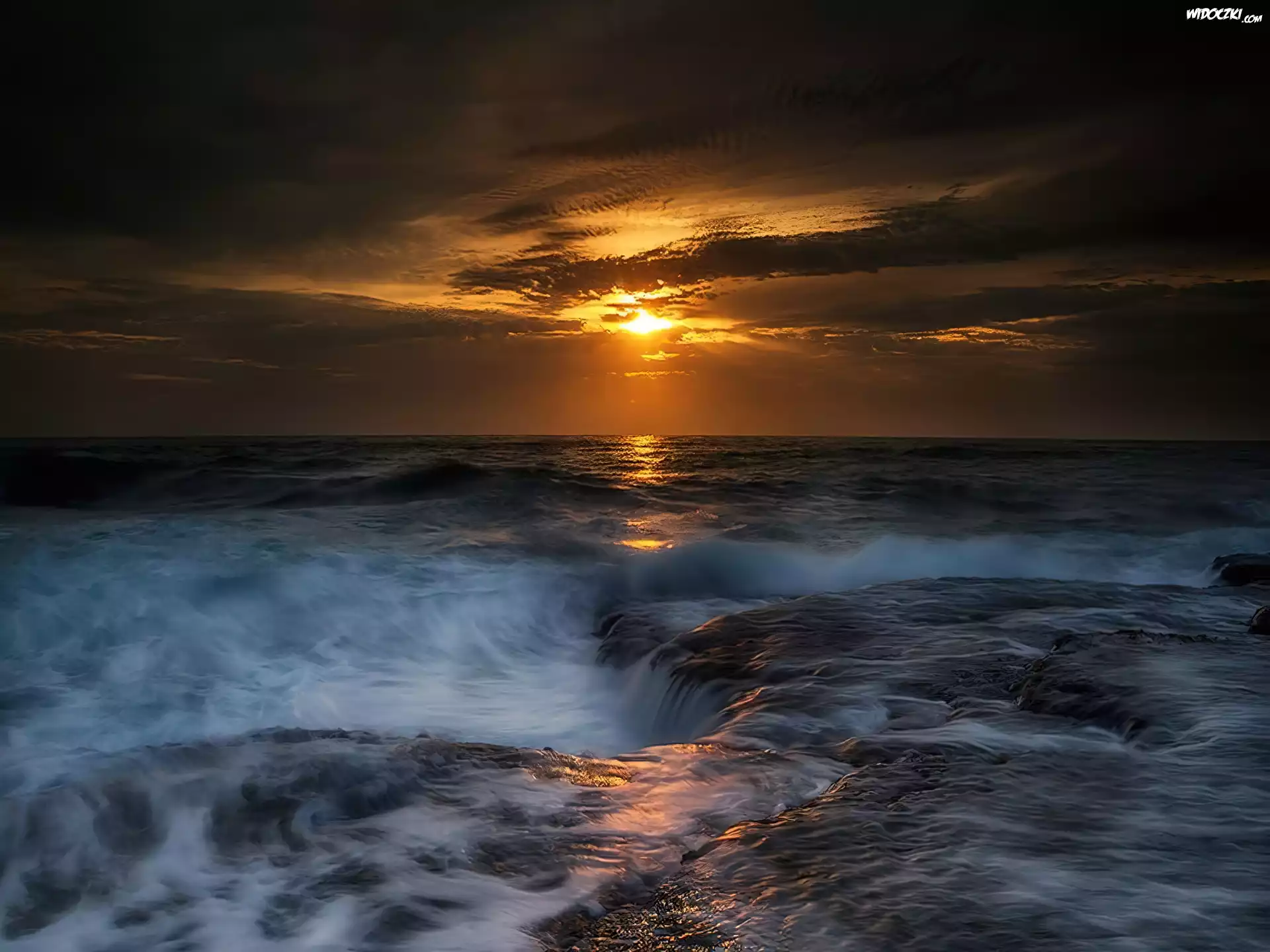 Zdjęcia, Zachód, Słońca, Morze, Brzeg