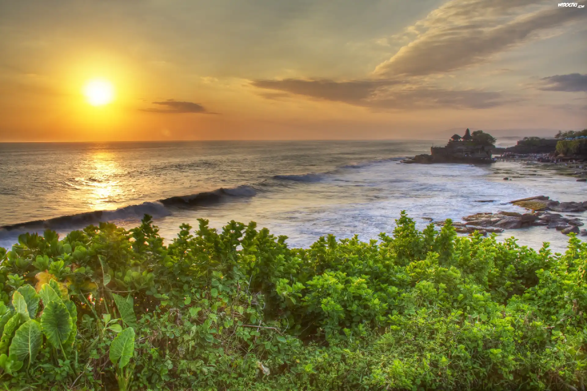 Zdjęcia, Zachód, Słońca, Morze, Brzeg