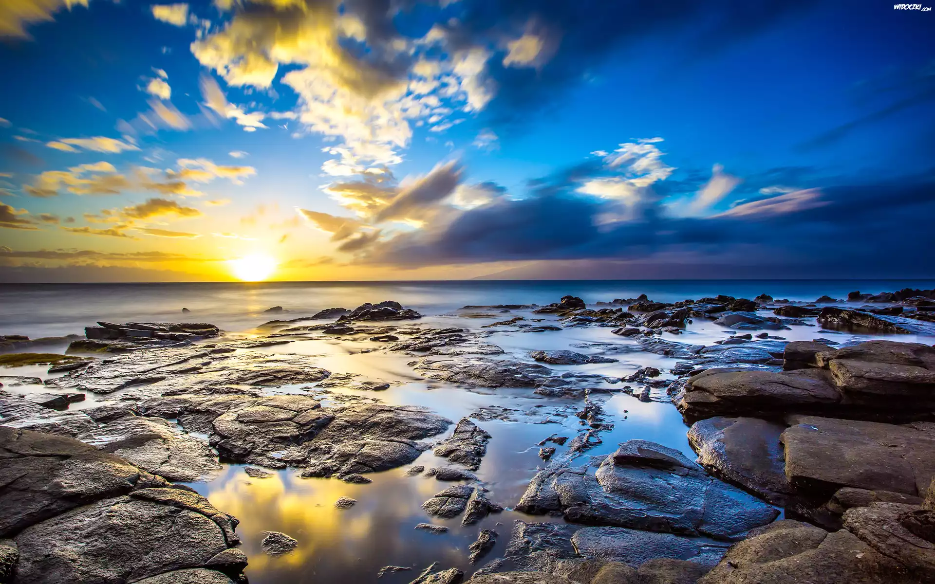 Zdjęcia, Zachód, Słońca, Morze, Chmury