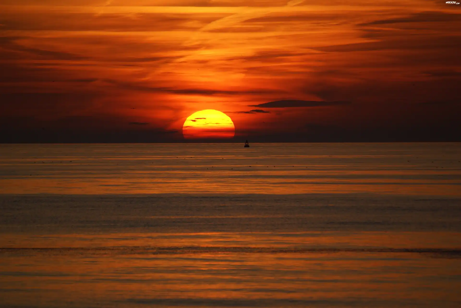 zachód słońca, Morze, Chmury