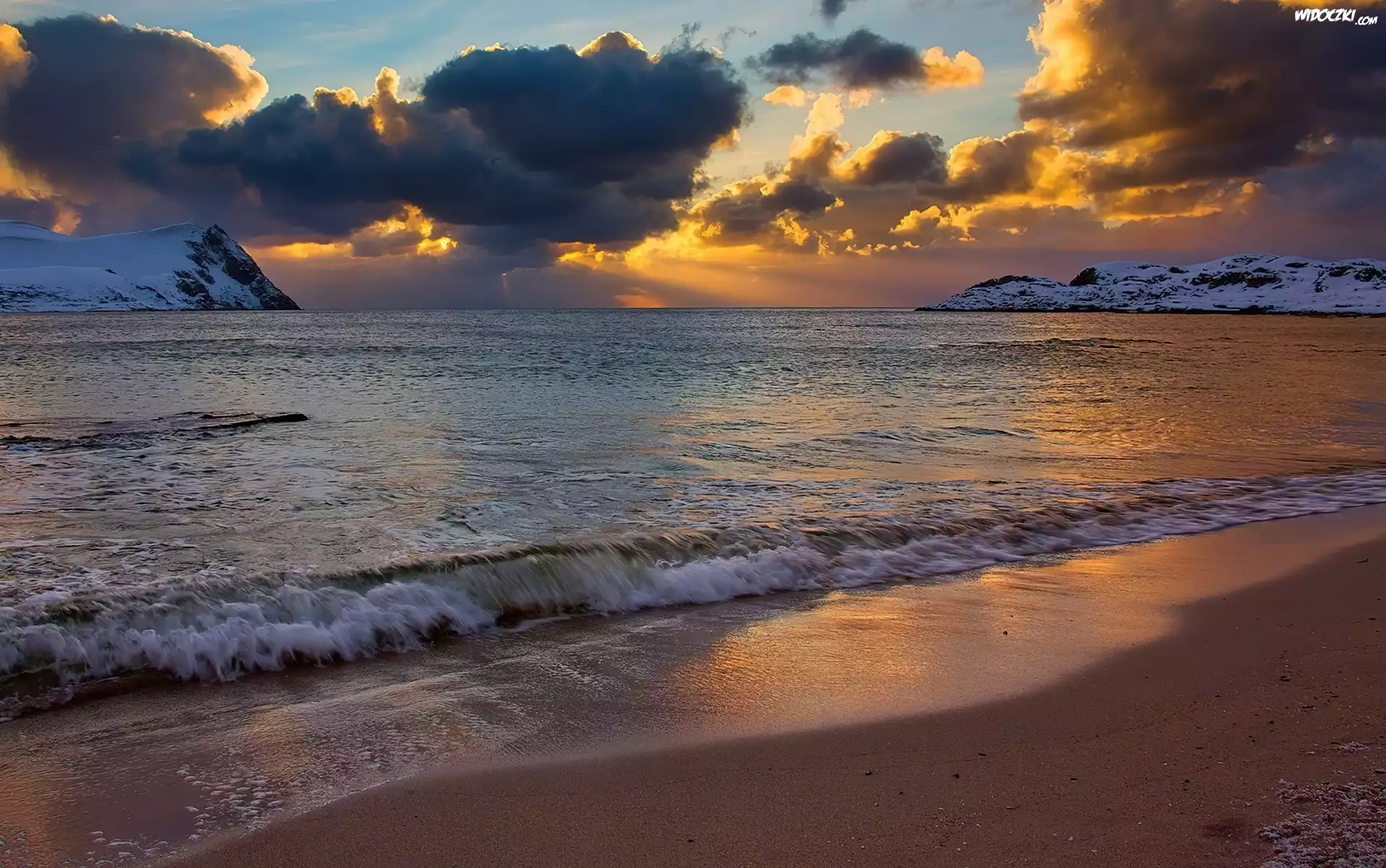 Zdjęcia, Zachód, Słonca, Morze, Chmury