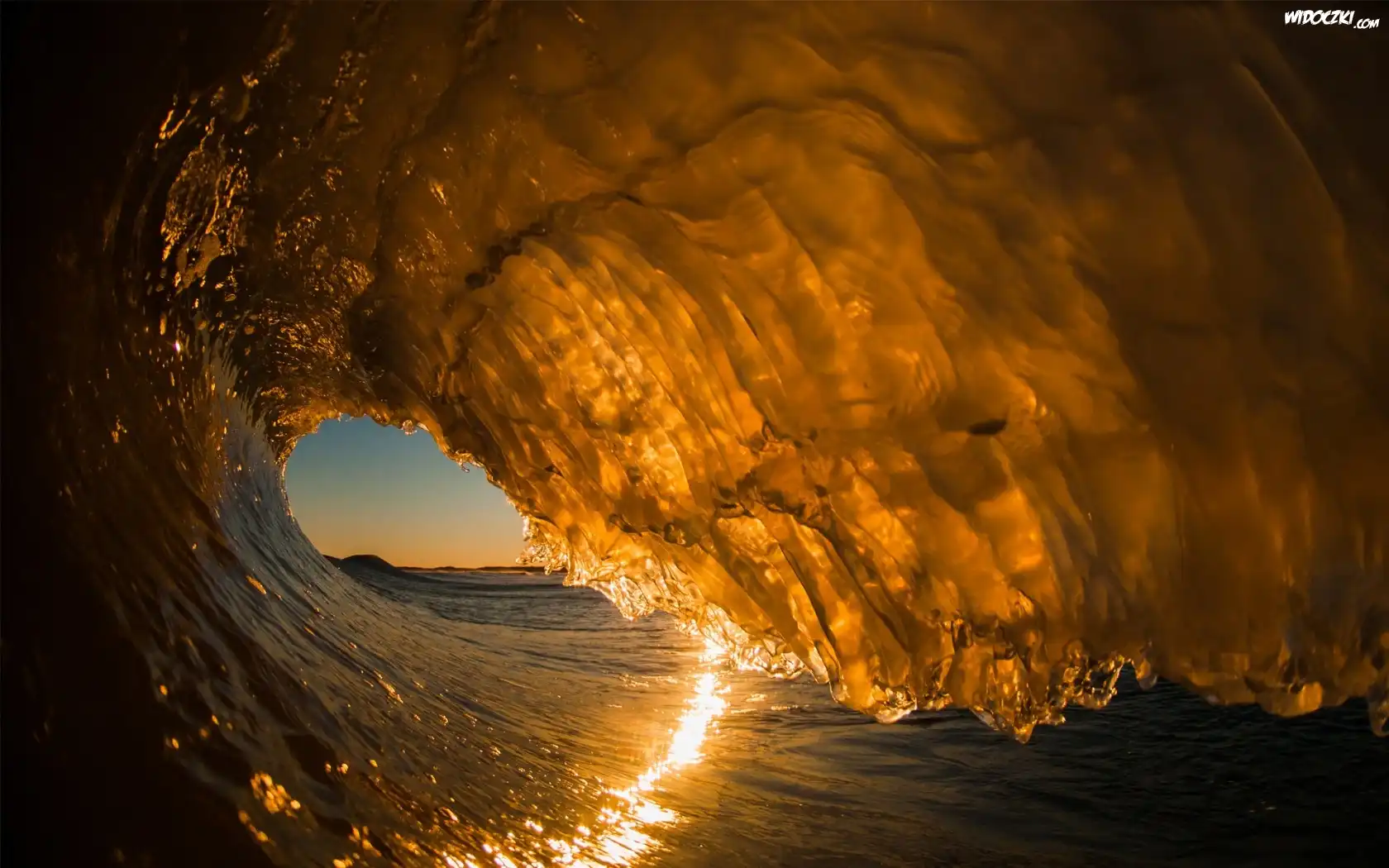 Zdjęcia, Zachód, Słońca, Morze, Fala