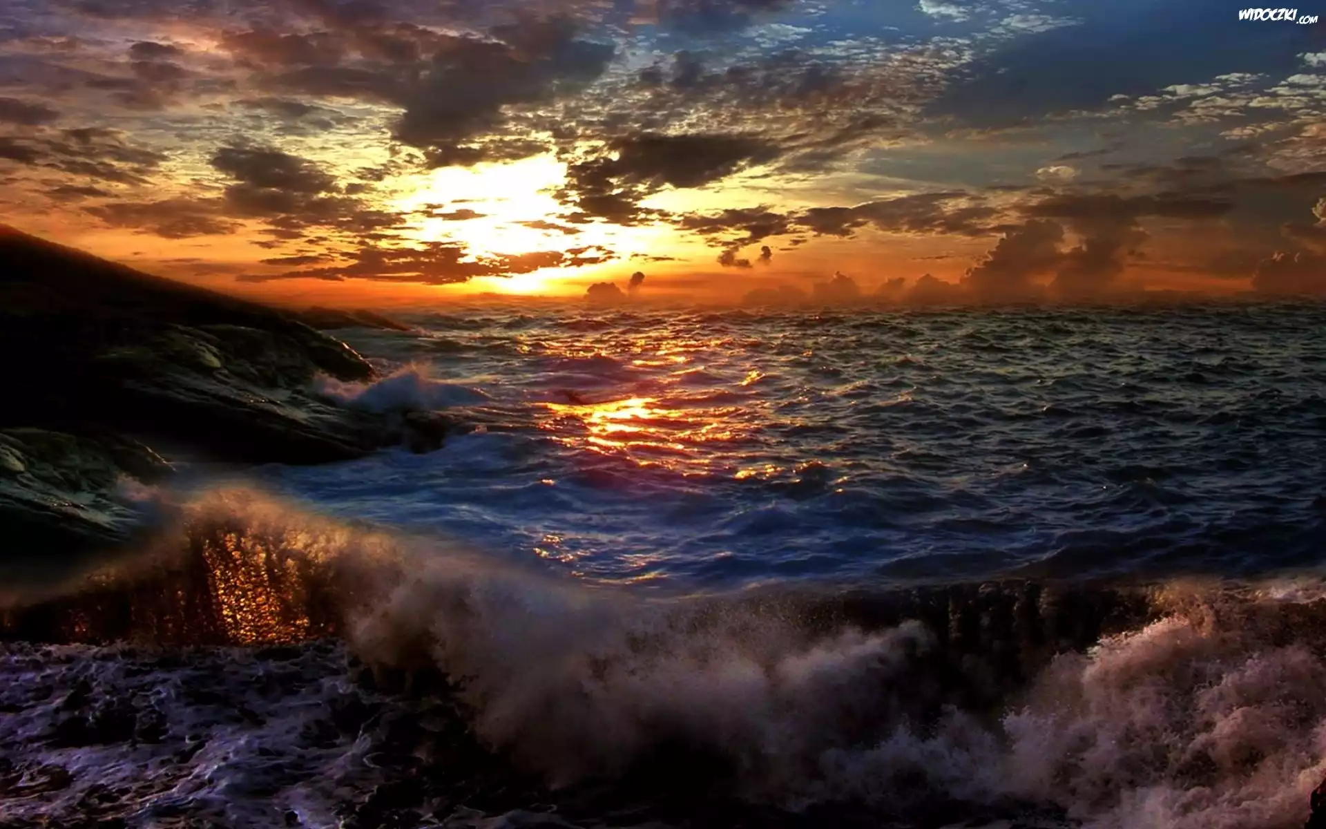 Zdjęcia, Zachód, Słońca, Morze, Fale
