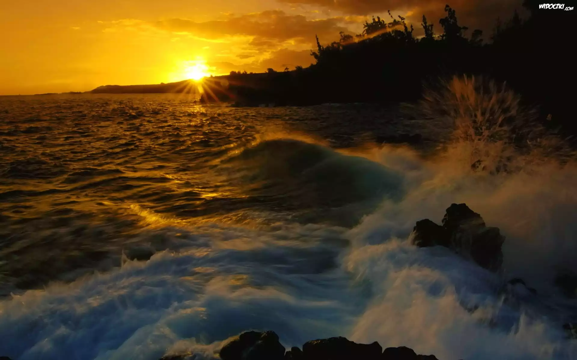 Zdjęcia, Zachód, Słońca, Morze, Fale