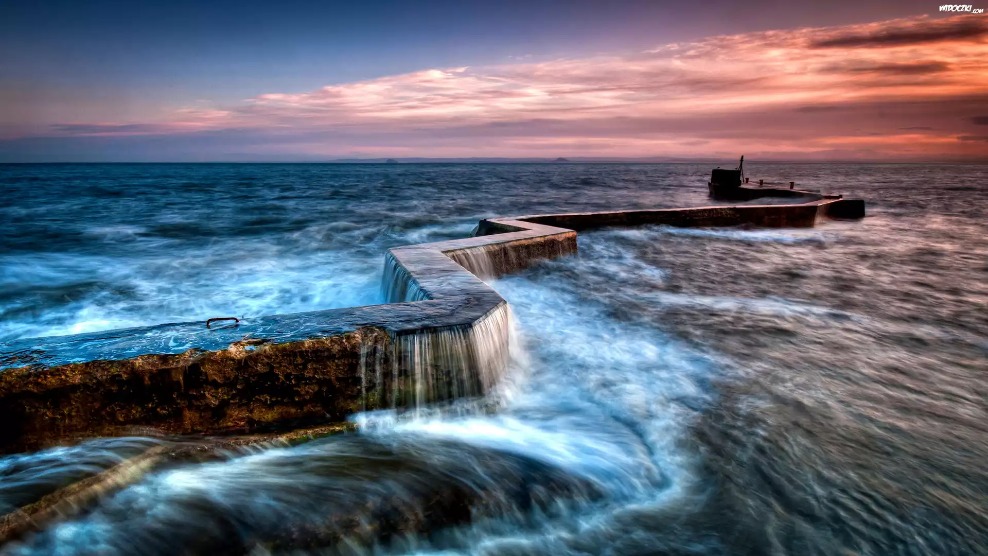 Zdjęcia, Zachód, Słońca, Morze, Falochron