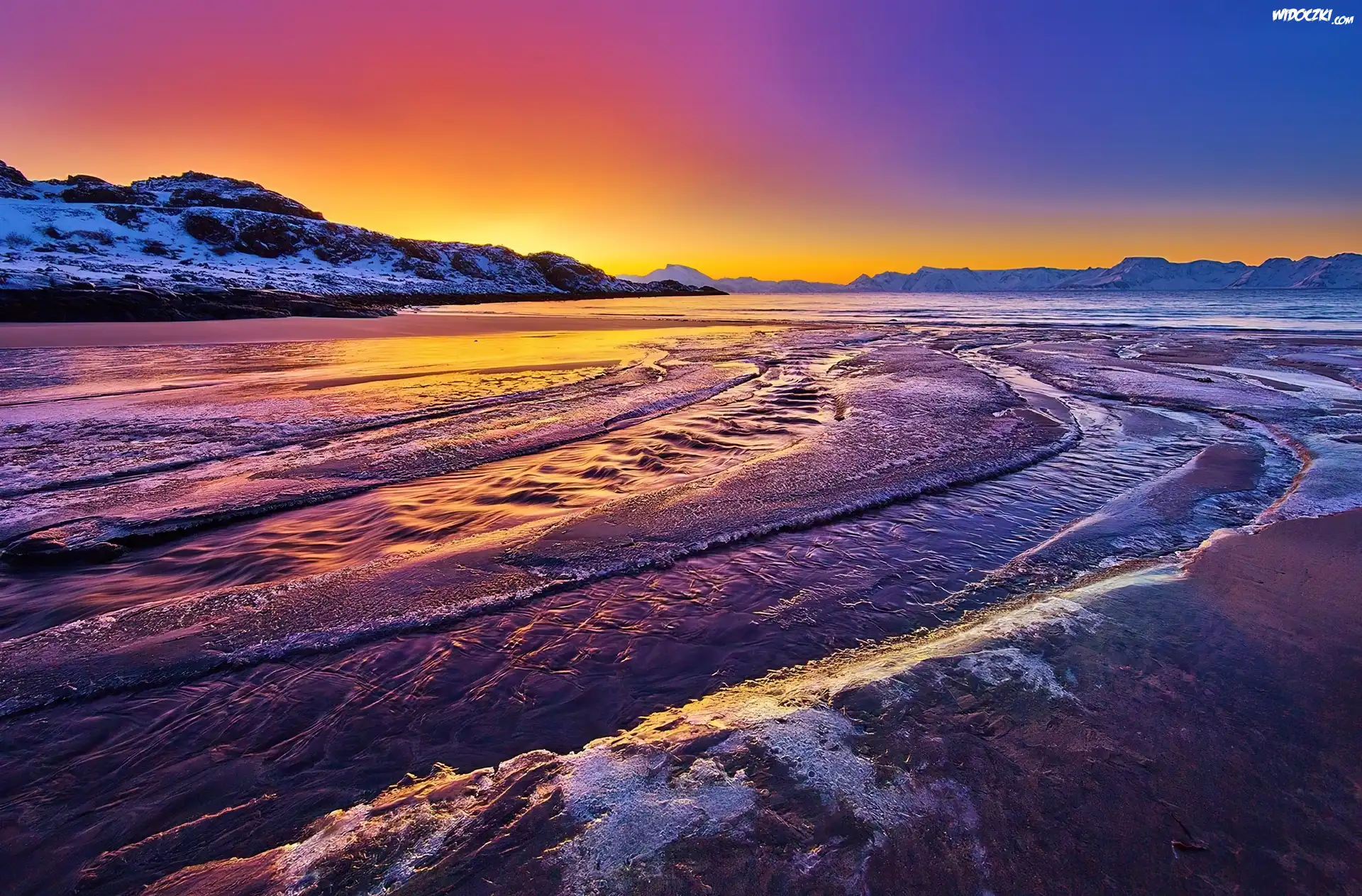 Zdjęcia, Zachód, Słońca, Morze, Góry