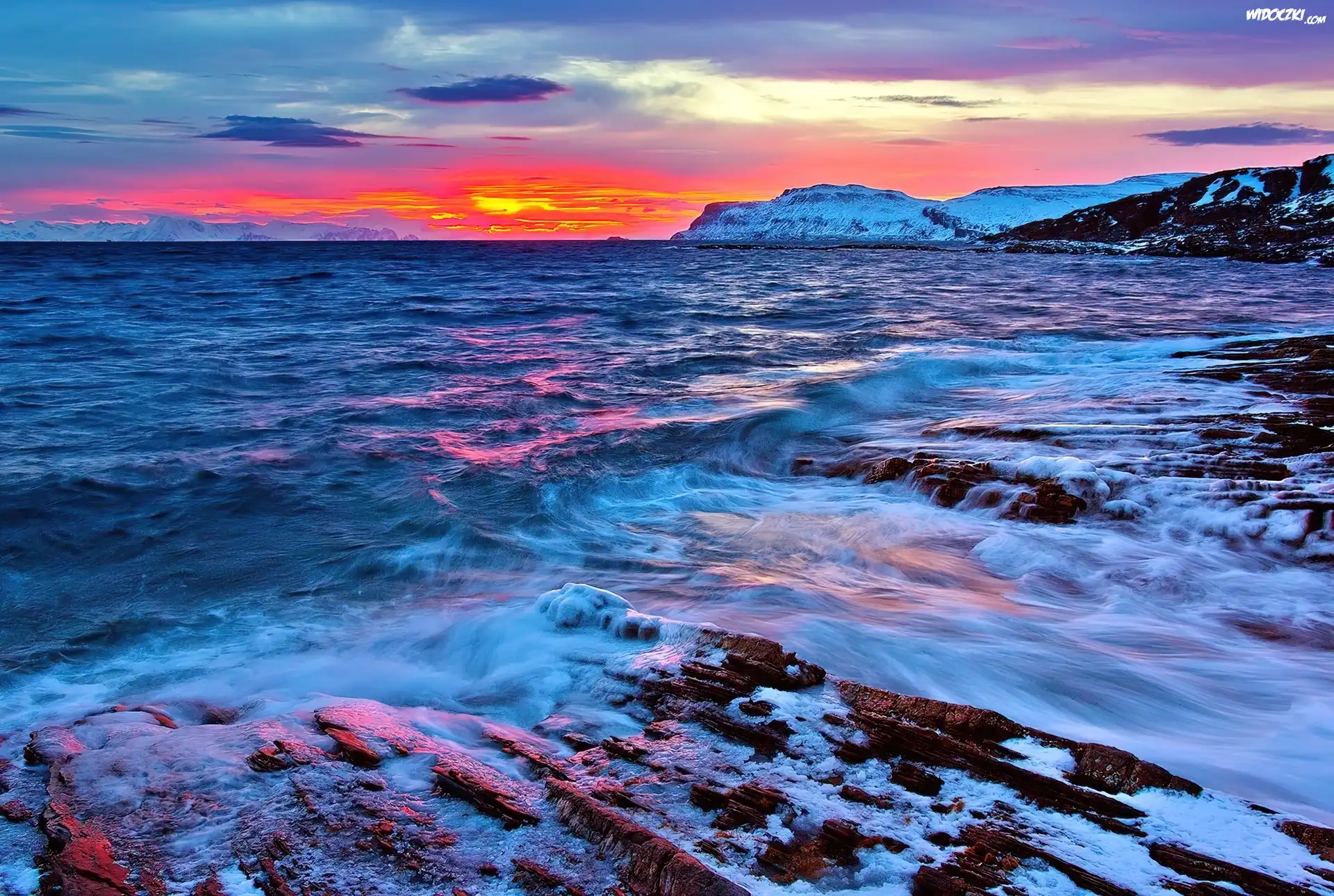 Zdjęcia, Zachód, Słońca, Morze, Góry