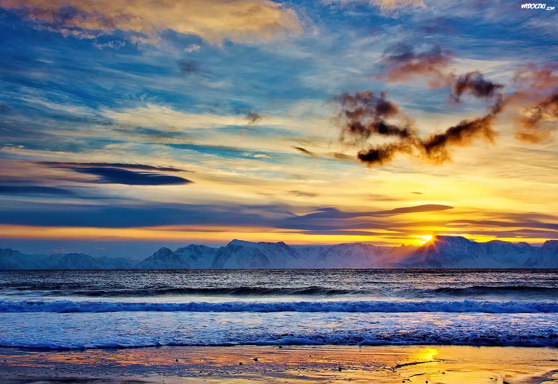 Zdjęcia, Zachód, Słońca, Morze, Góry