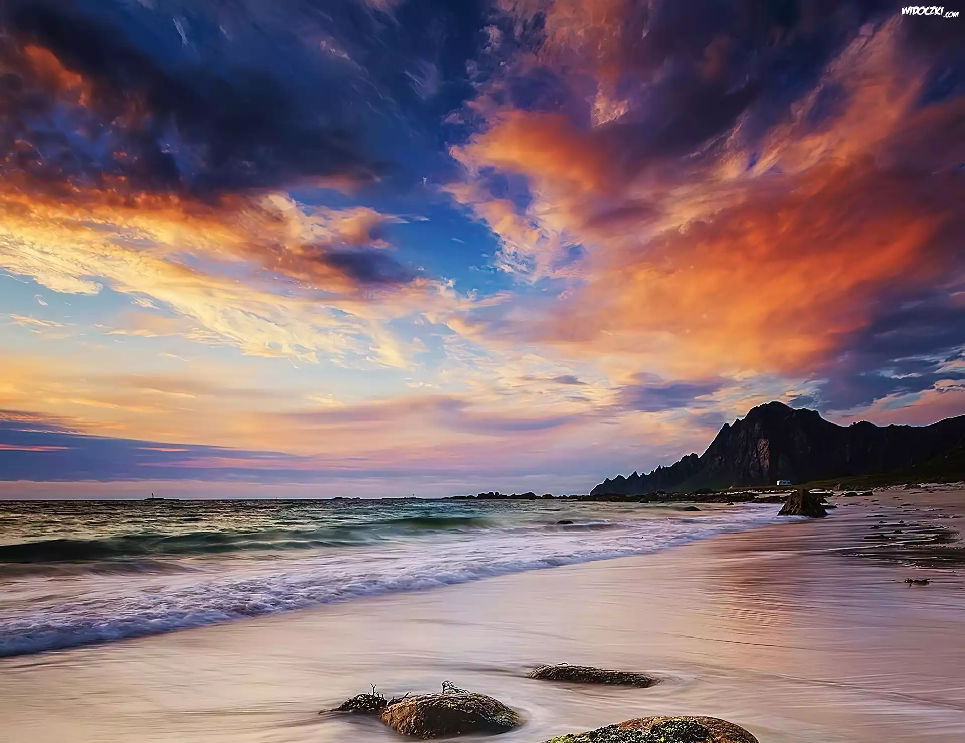 Zdjęcia, Zachód, Słońca, Morze, Góry