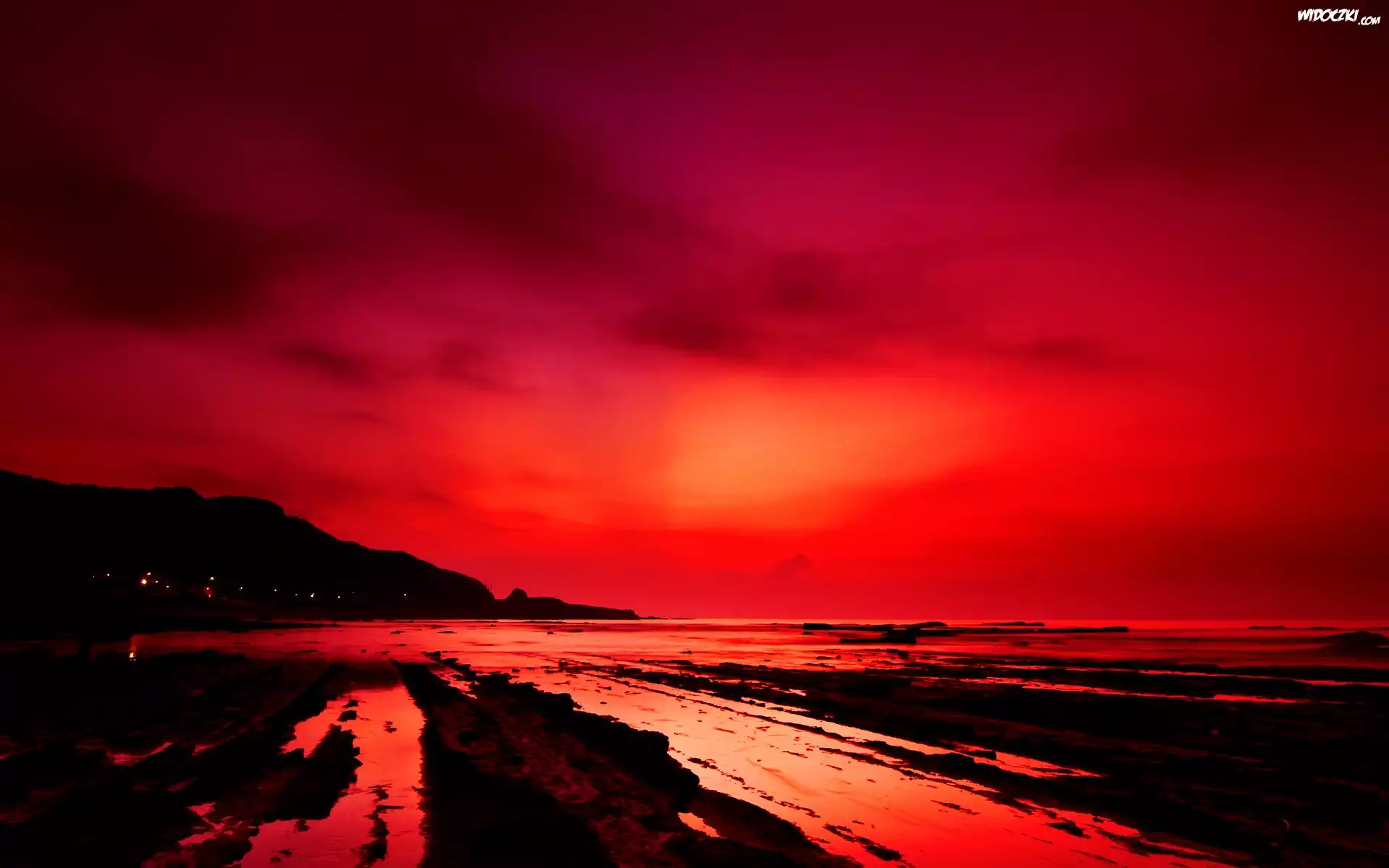 Zdjęcia, Zachód, Słońca, Morze, Góry