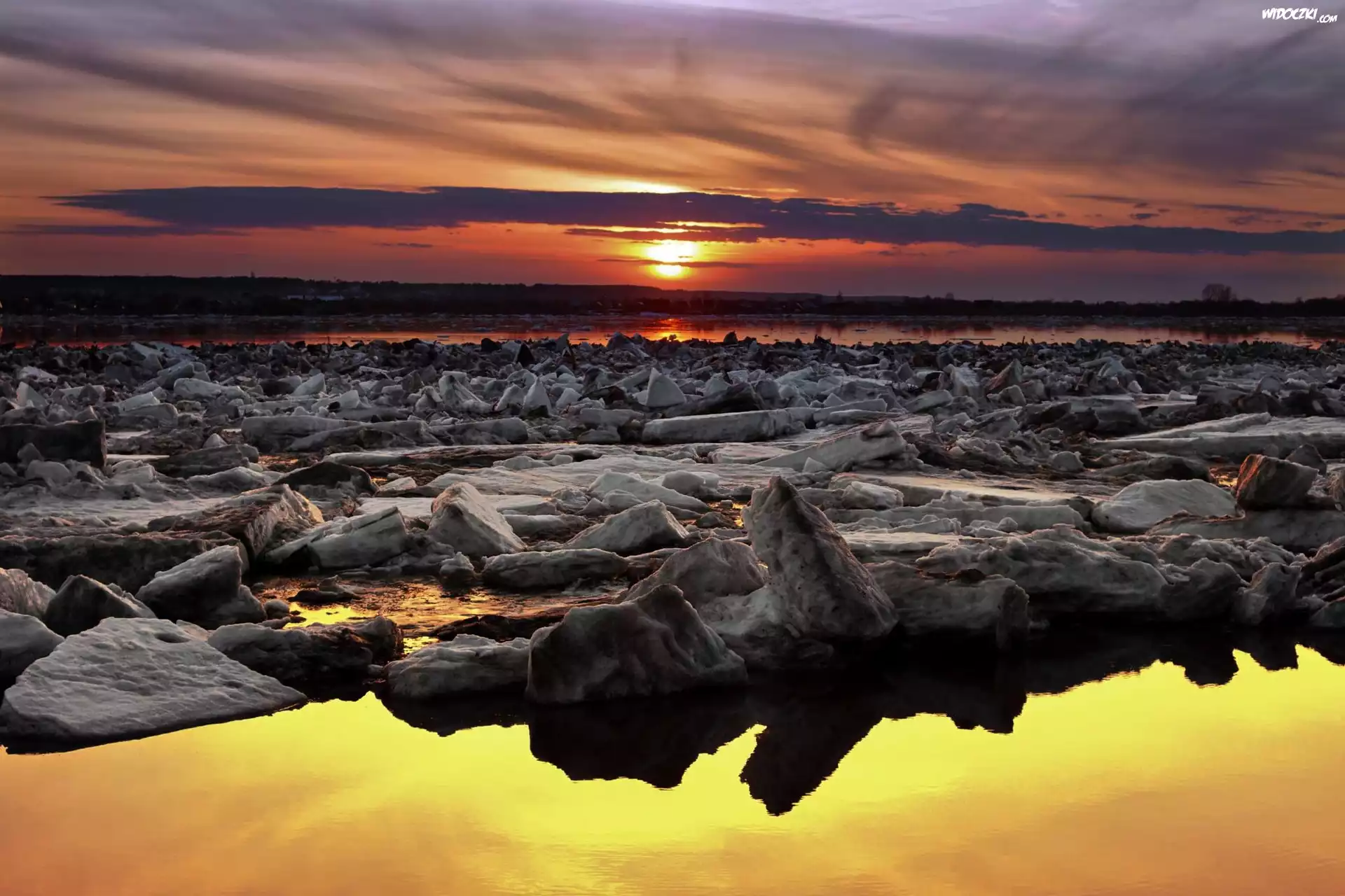 Zdjęcia, Zachód, Słońca, Morze, Lód