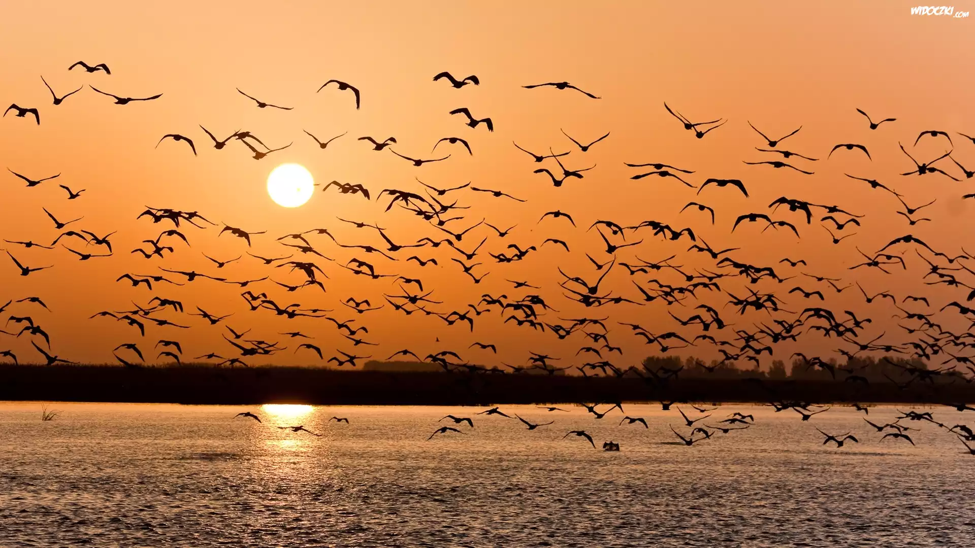 Zdjęcia, Zachód Słońca, Morze, Mewy