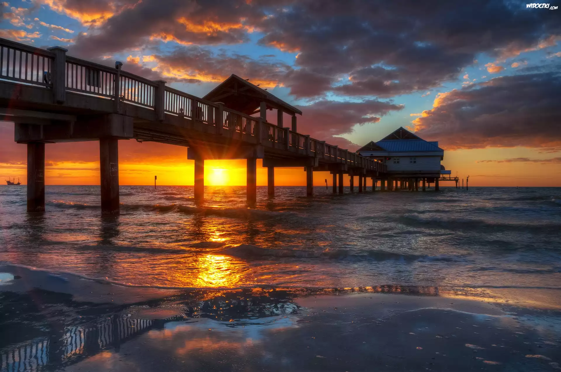 Zdjęcia, Zachód, Słońca, Morze, Molo