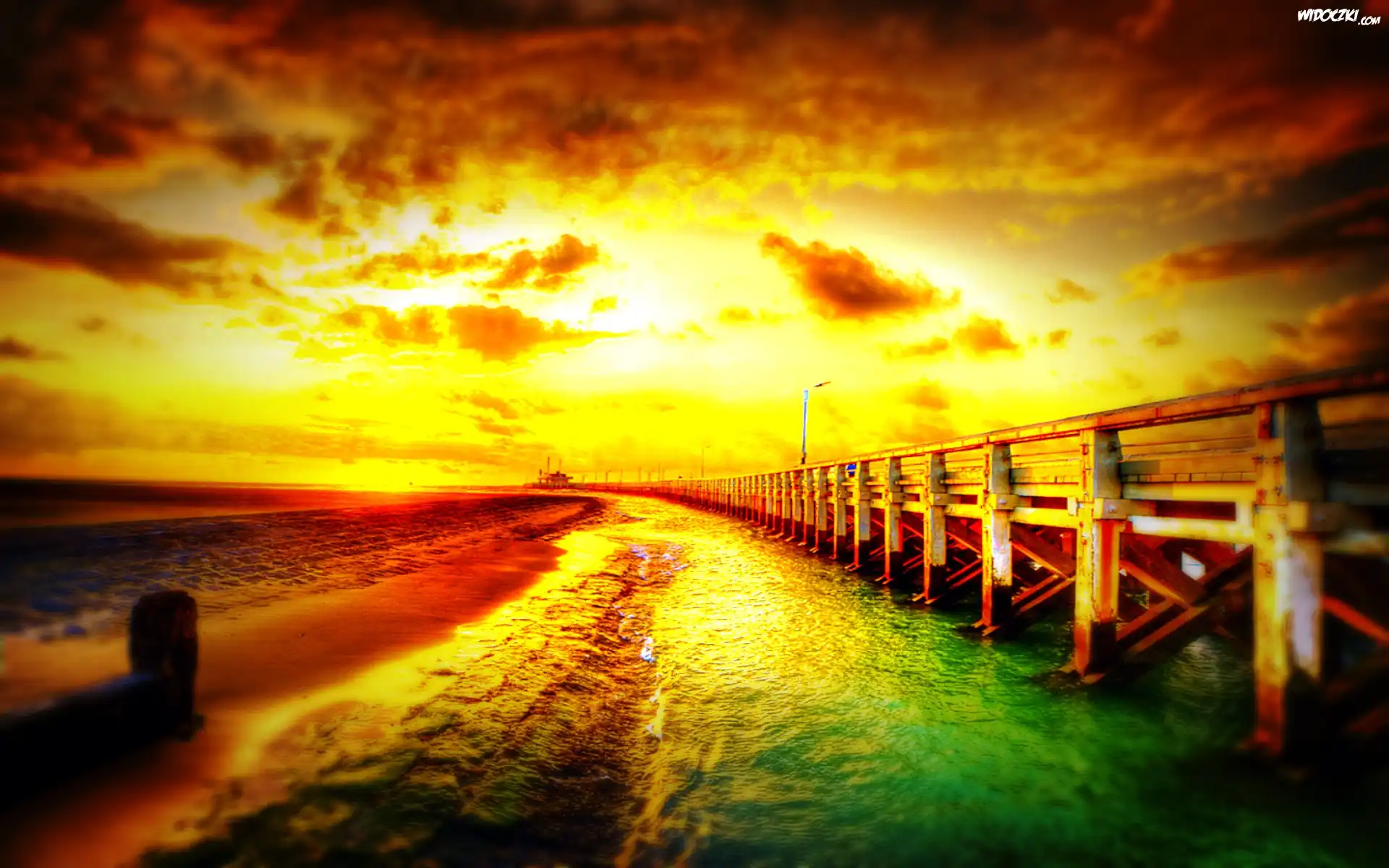 Zdjęcia, Zachód, Słońca, Morze, Molo