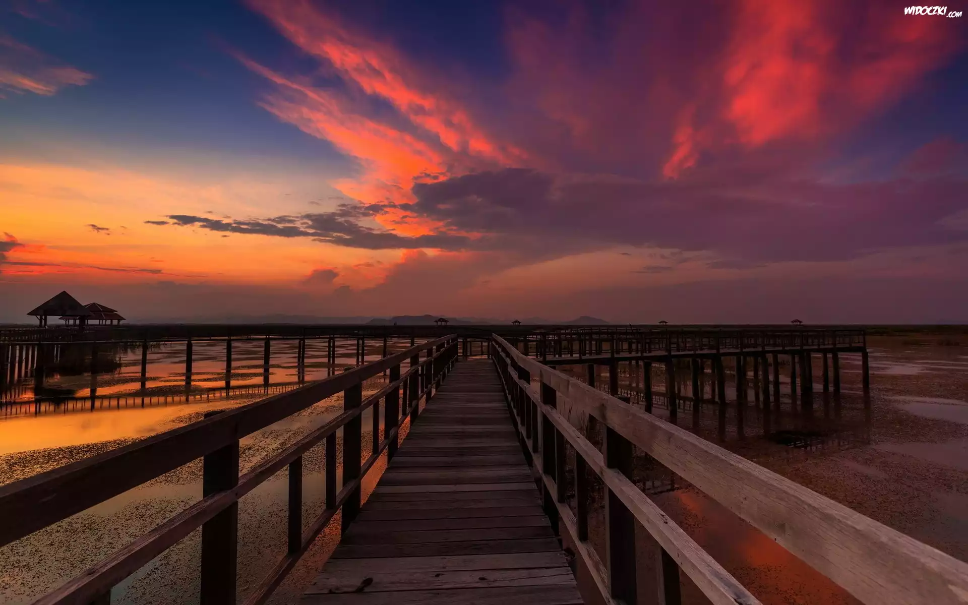 Zdjęcia, Zachód, Słońca, Morze, Molo