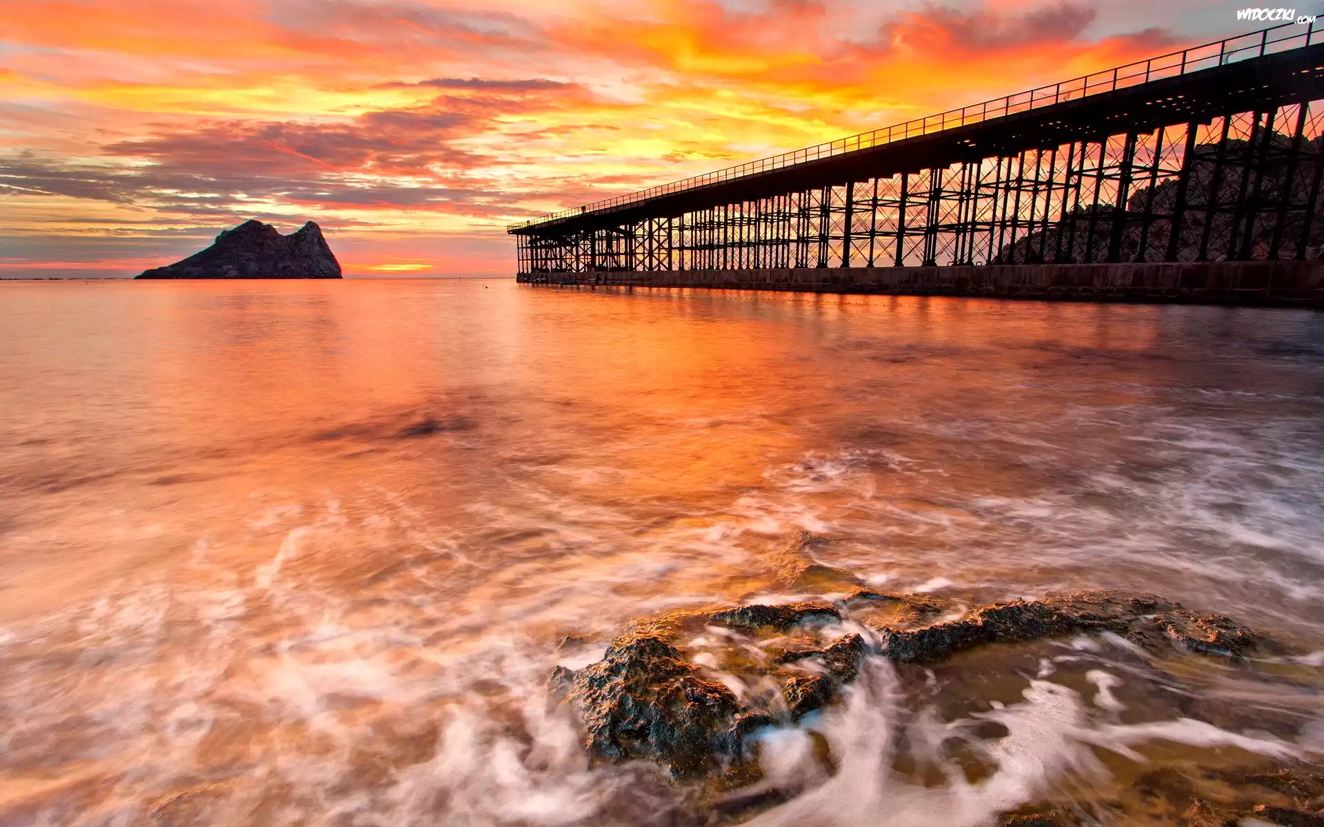 Zachód Słońca, Morze, Most