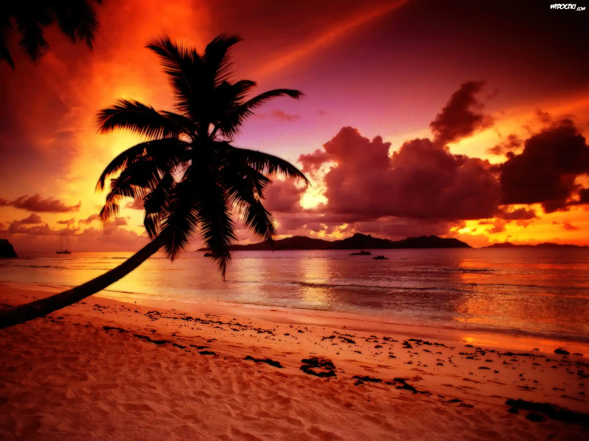 Zdjęcia, Zachód, Słońca, Morze, Palma