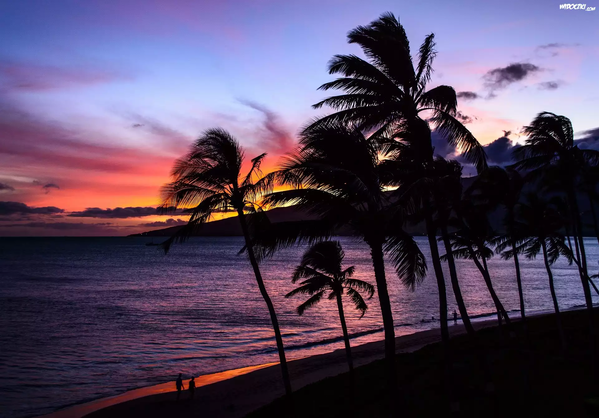 Zdjęcia, Zachód, Słońca, Morze, Palmy