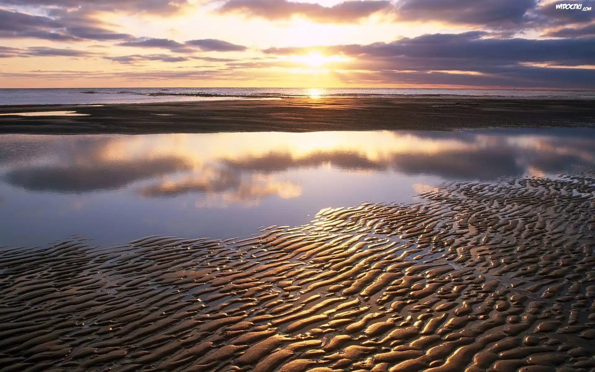 Zdjęcia, Zachód, Słońca, Morze, Piasek