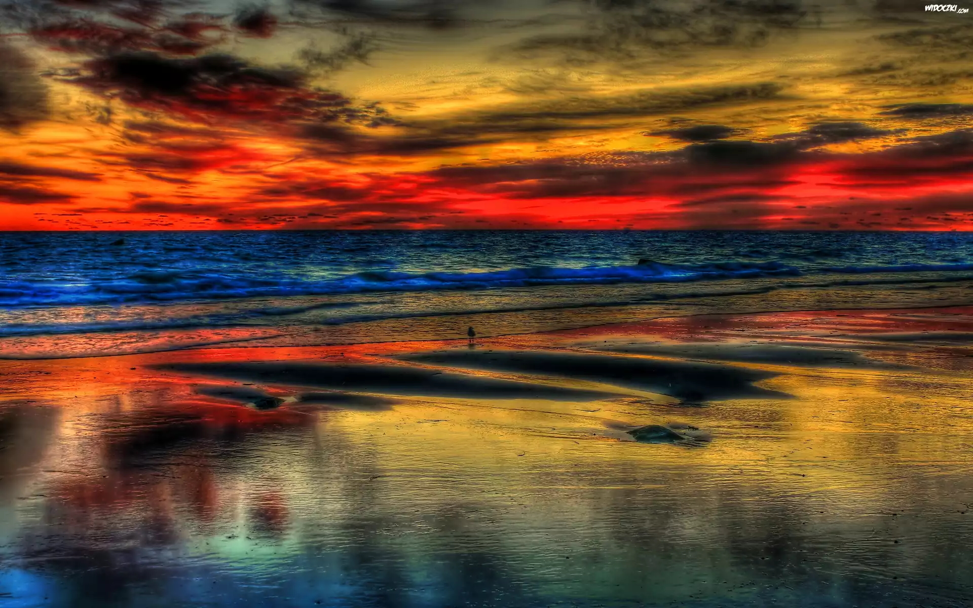 Zdjęcia, Zachód, Słońca, Morze, Plaża