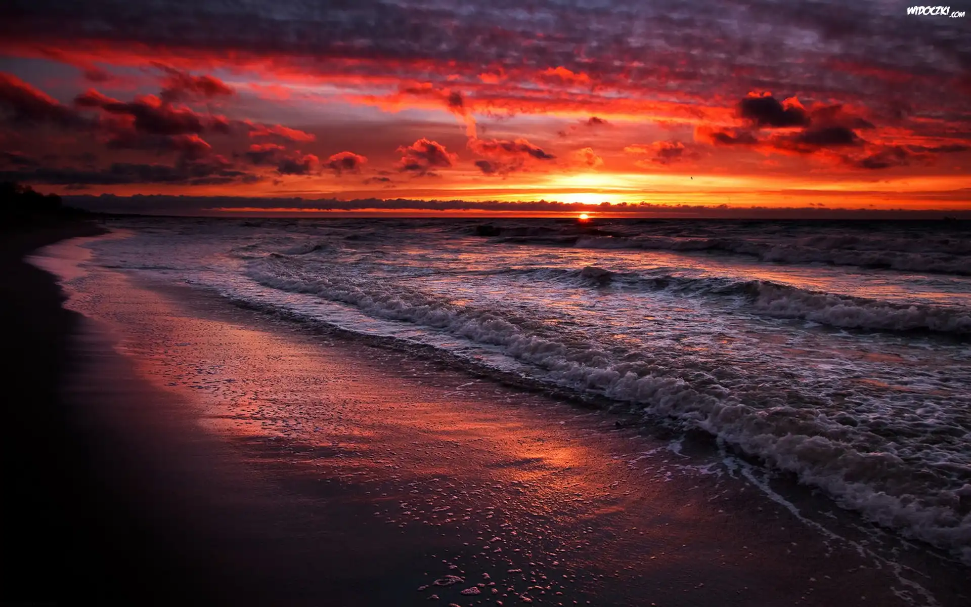Zdjęcia, Zachód, Słońca, Morze, Plaża