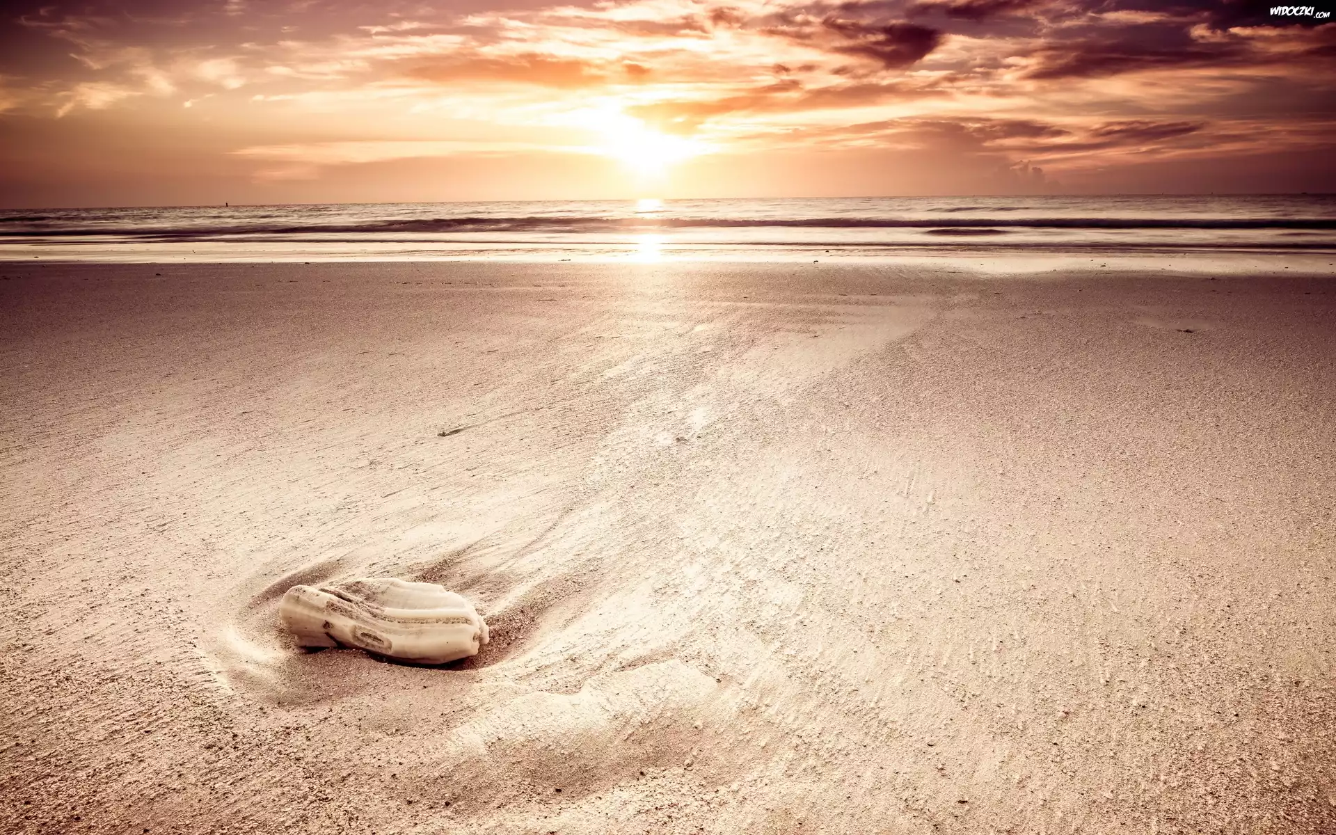 Zdjęcia, Zachód, Słońca, Morze, Plaża