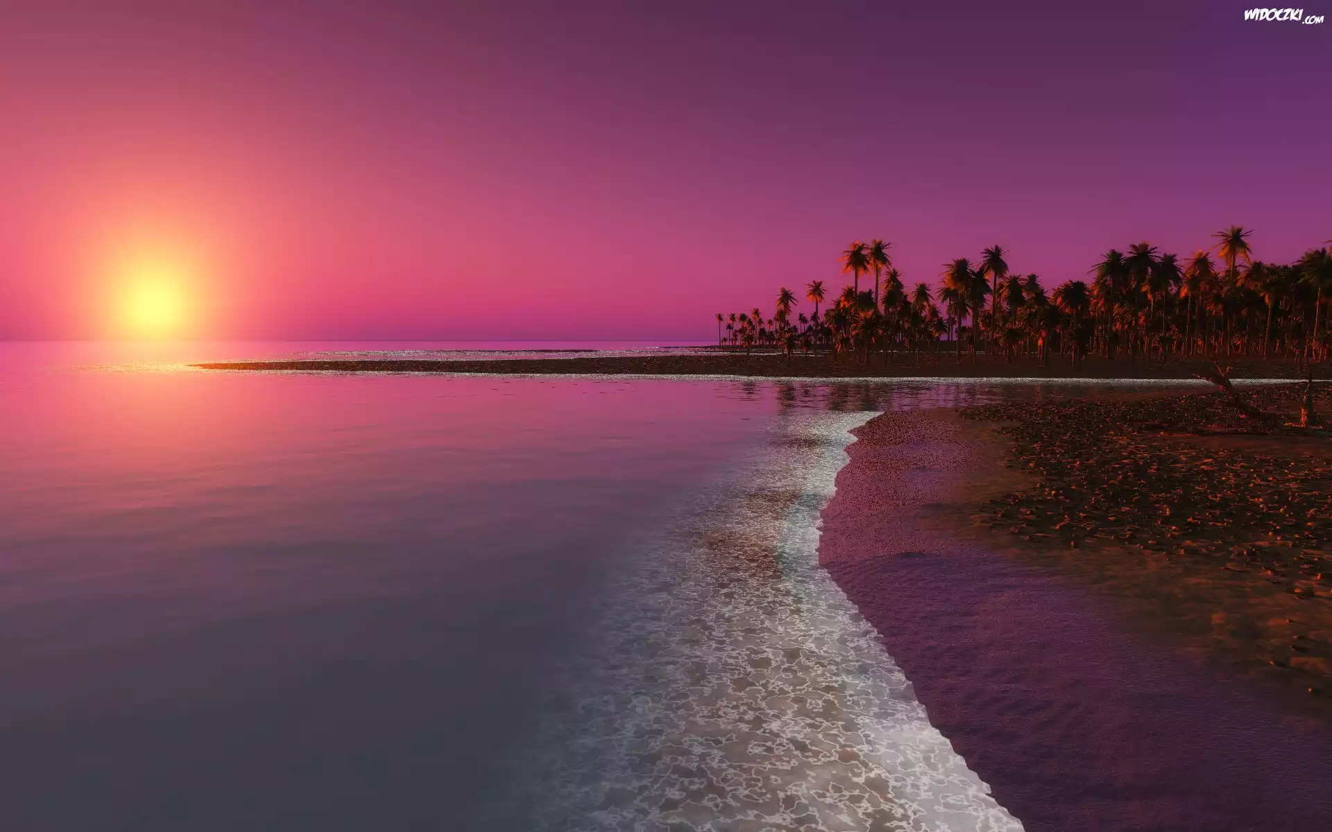 Zdjęcia, Zachód słońca, Morze, Plaża