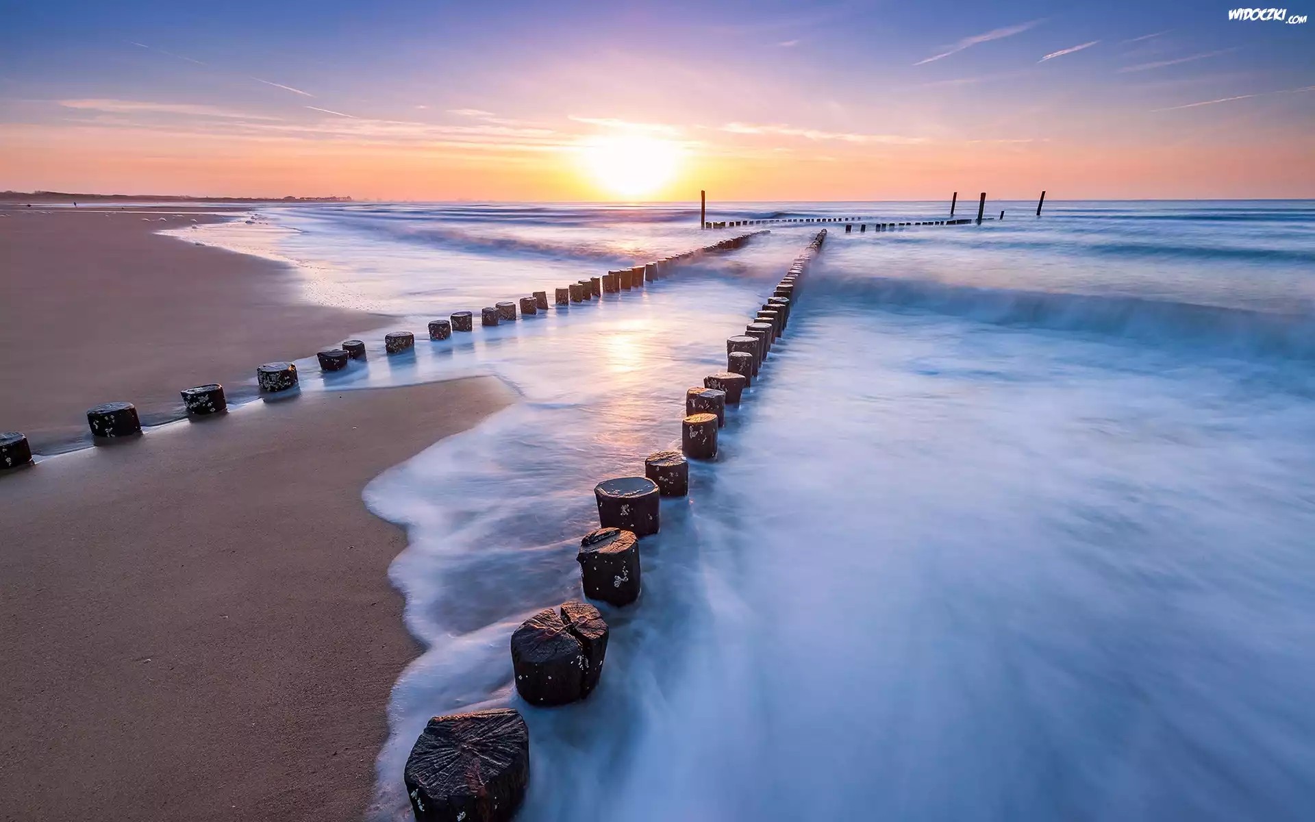 Zdjęcia, Zachód, Słońca, Morze, Plaża