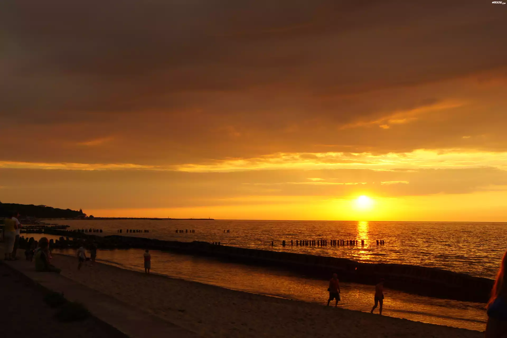 Zdjęcia, Zachód, Słońca, Morze, Plaża