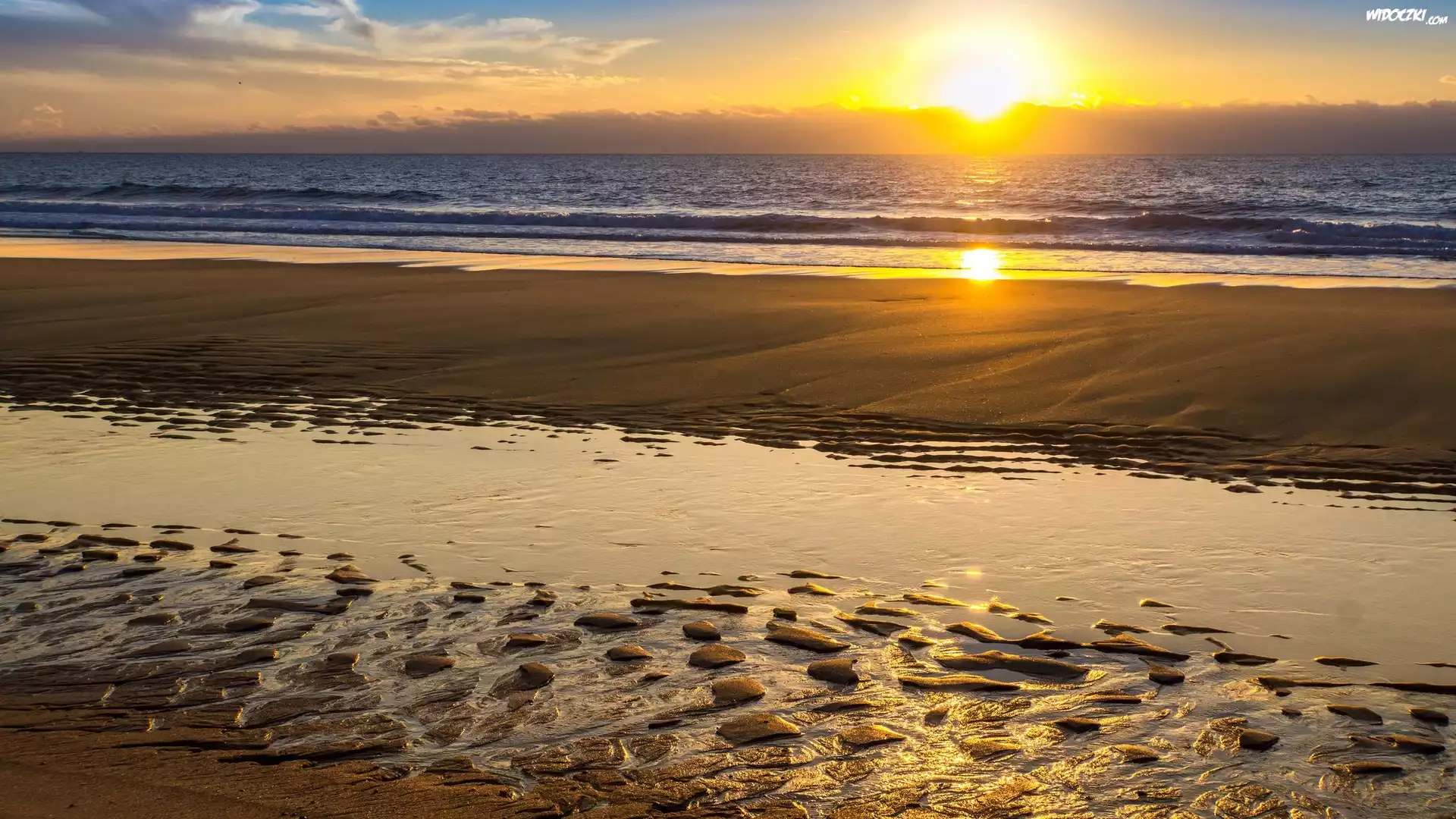 Zdjęcia, Zachód słońca, Morze, Plaża