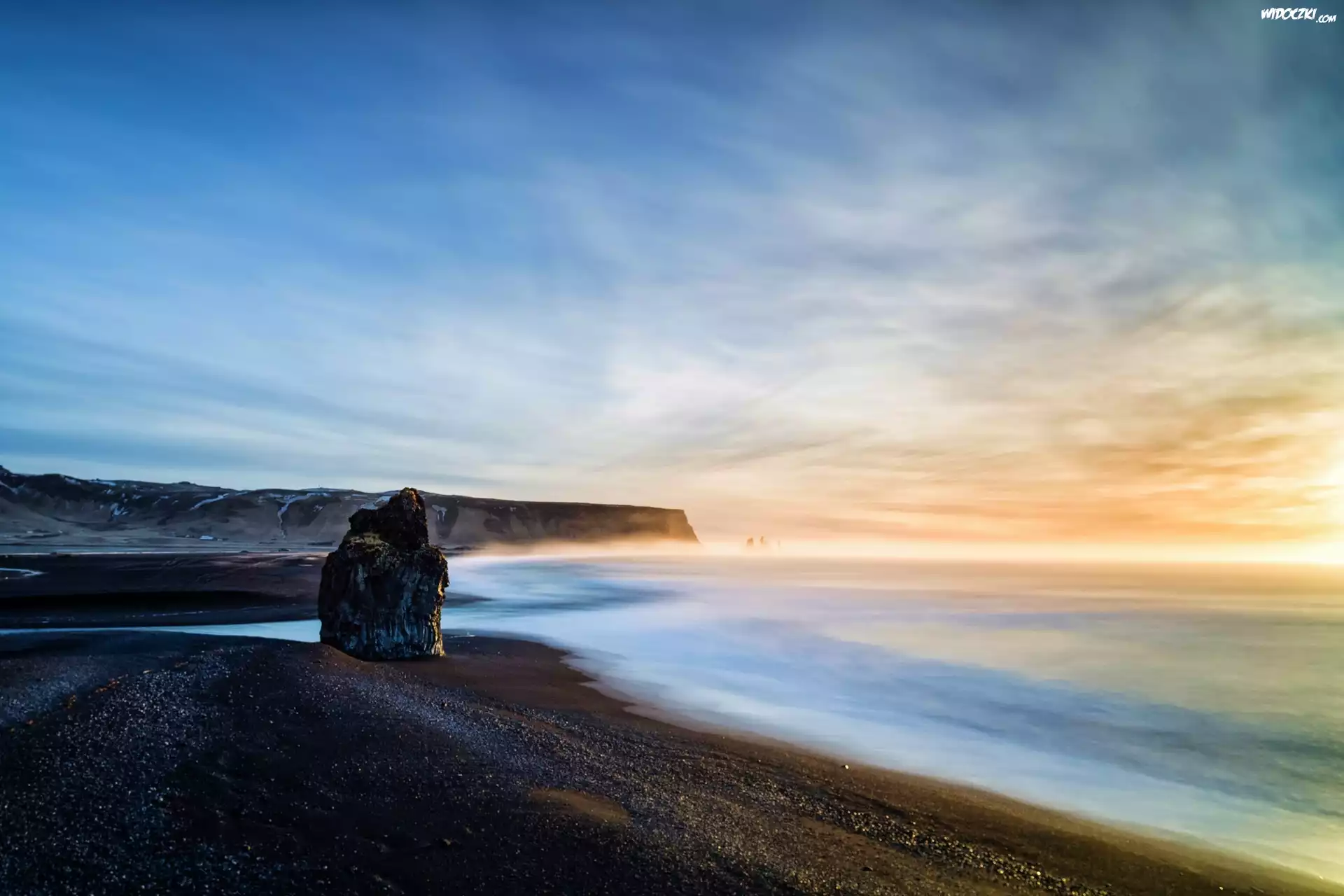 Zdjęcia, Zachód, Słońca, Morze, Skała
