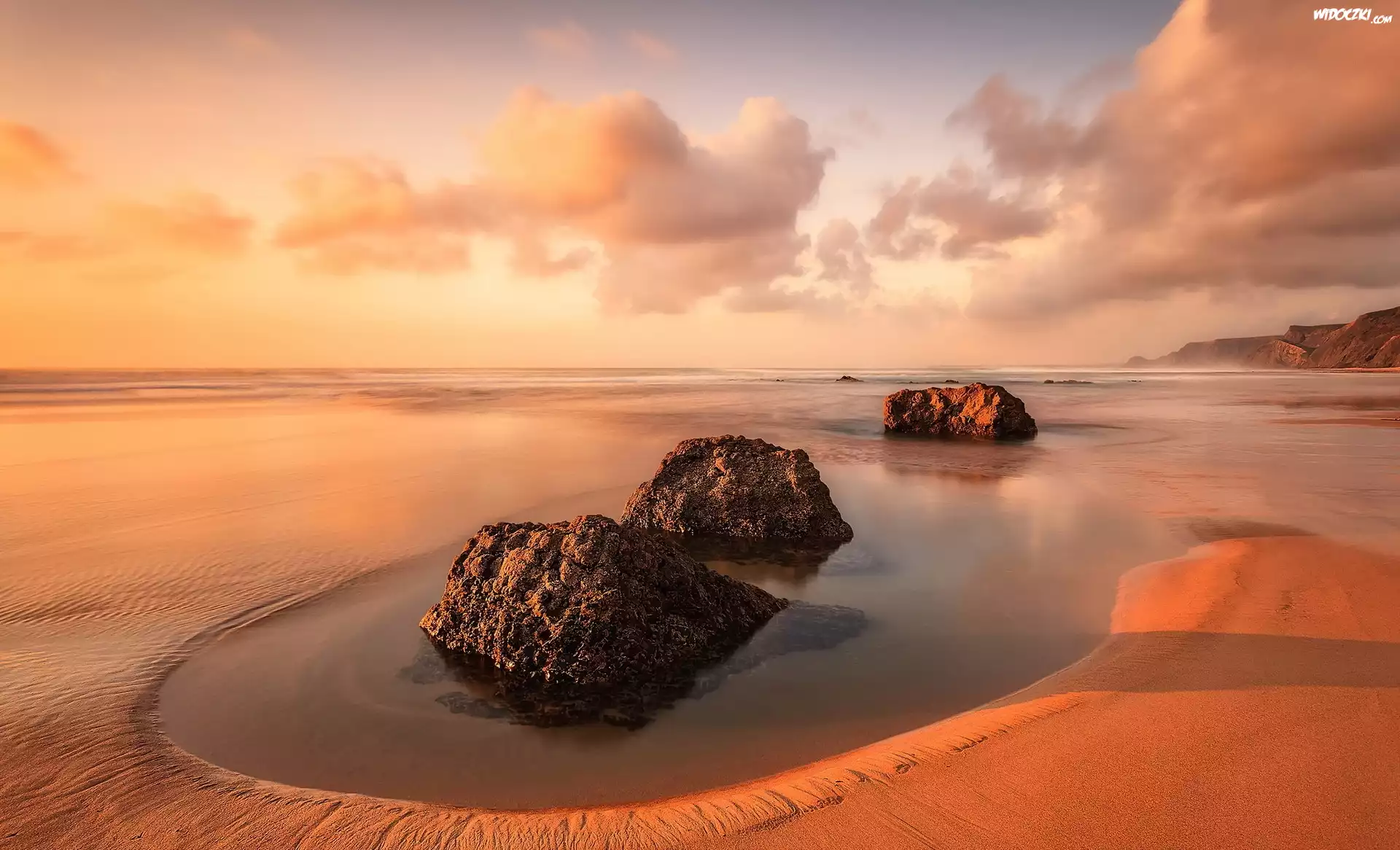 Zdjęcia, Zachód słońca, Morze, Skałki