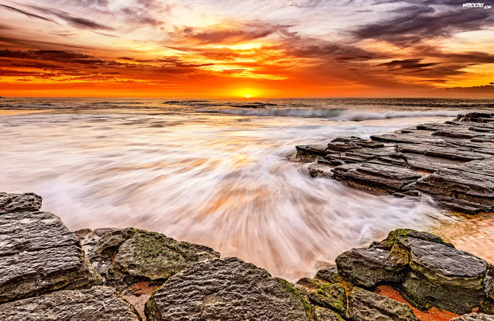 Zdjęcia, Zachód, Słońca, Morze, Skały
