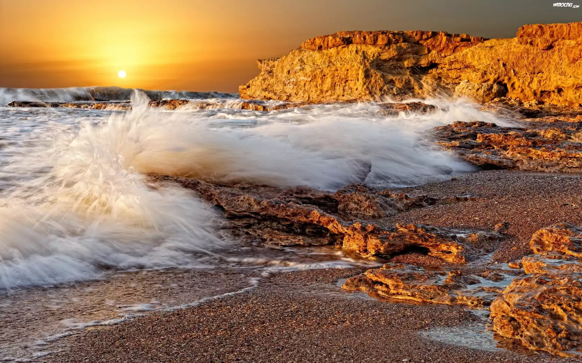 Zdjęcia, Zachód, Słońca, Morze, Skały