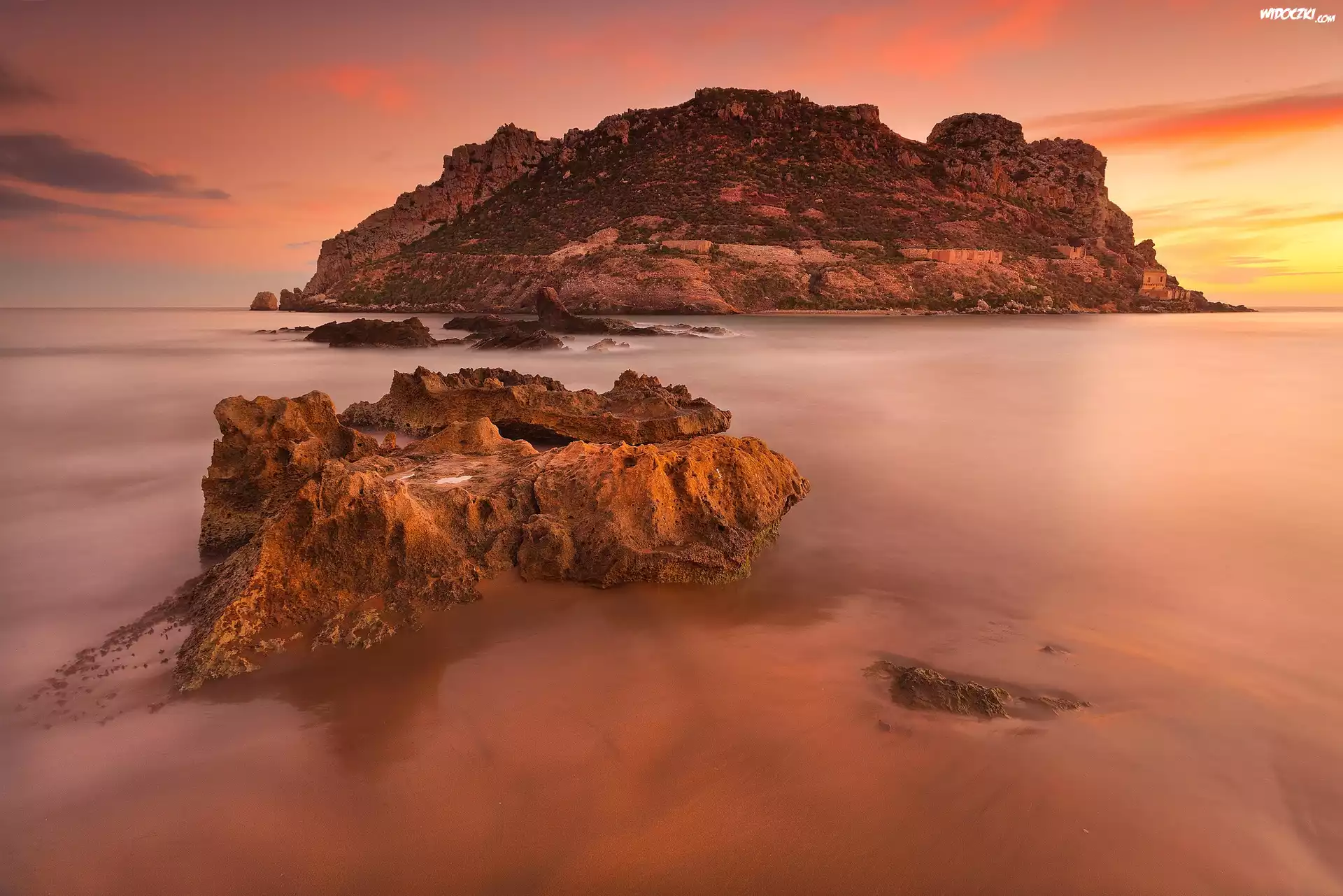 Zdjęcia, Zachód, Słońca, Morze, Skały