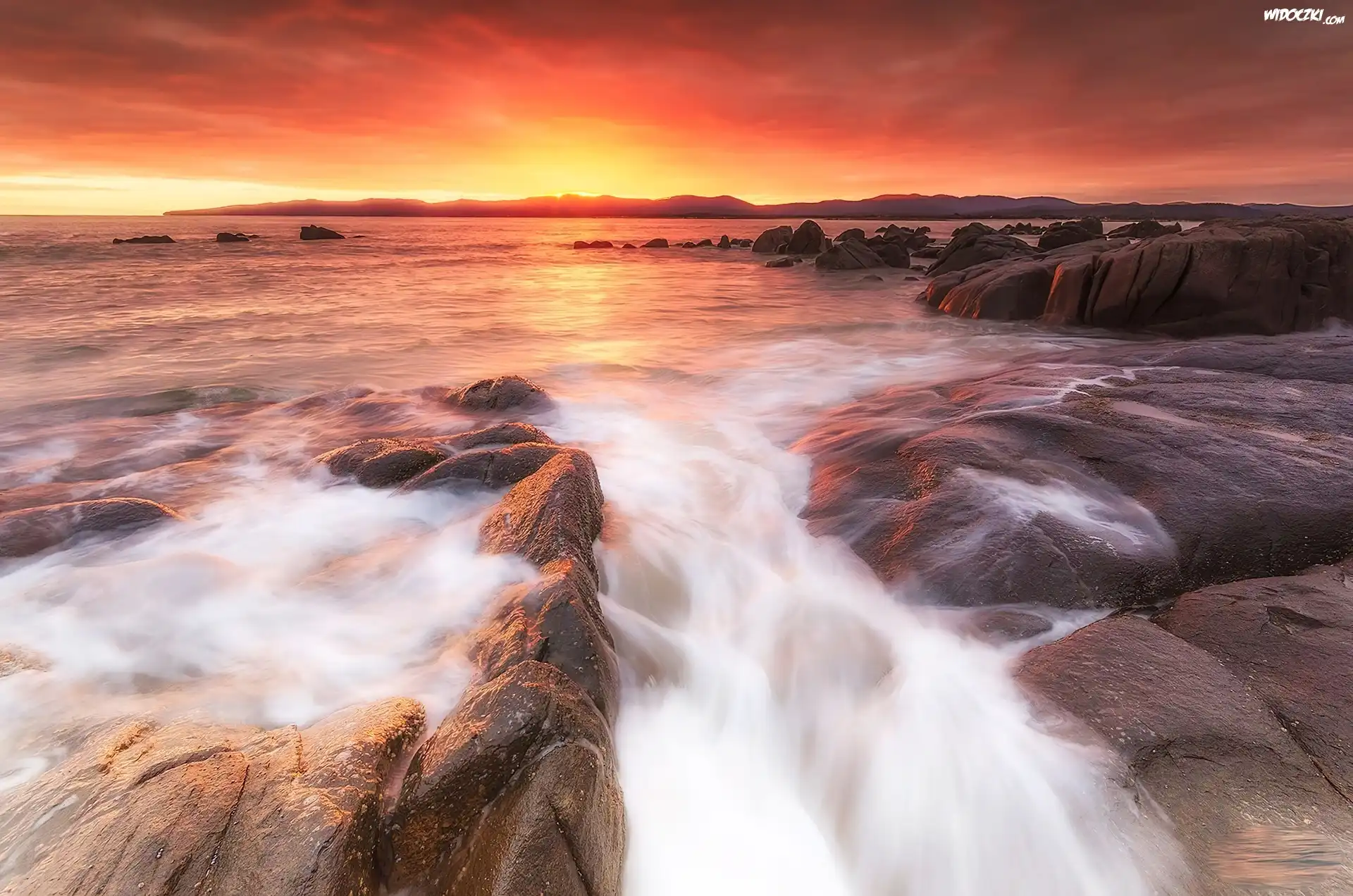 Zdjęcia, Zachód, Słońca, Morze, Skały