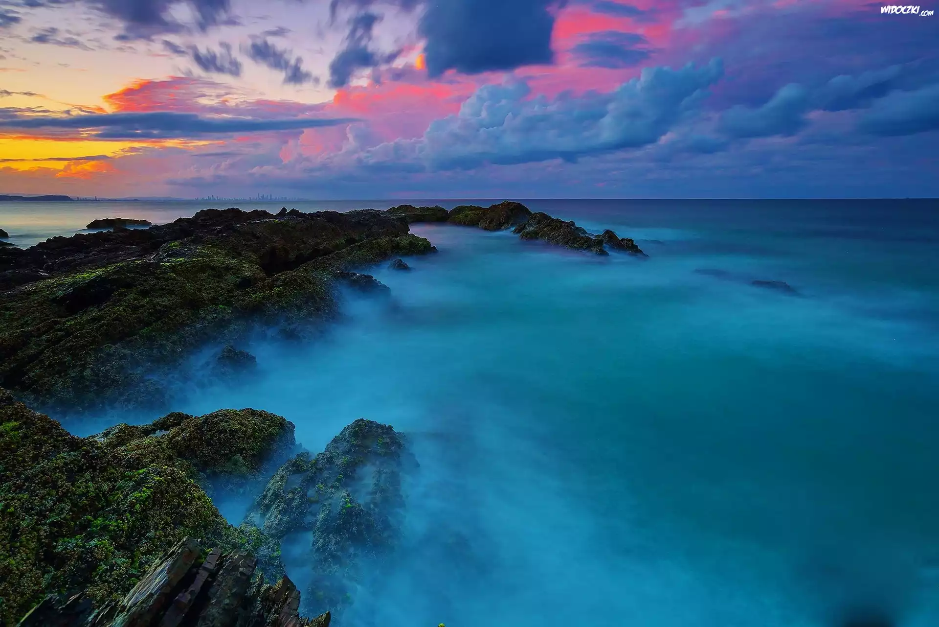 Zdjęcia, Zachód, Słońca, Morze, Skały