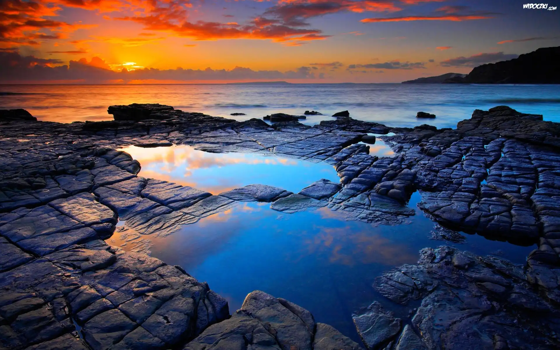 Zdjęcia, Zachód, Słońca, Morze, Skały