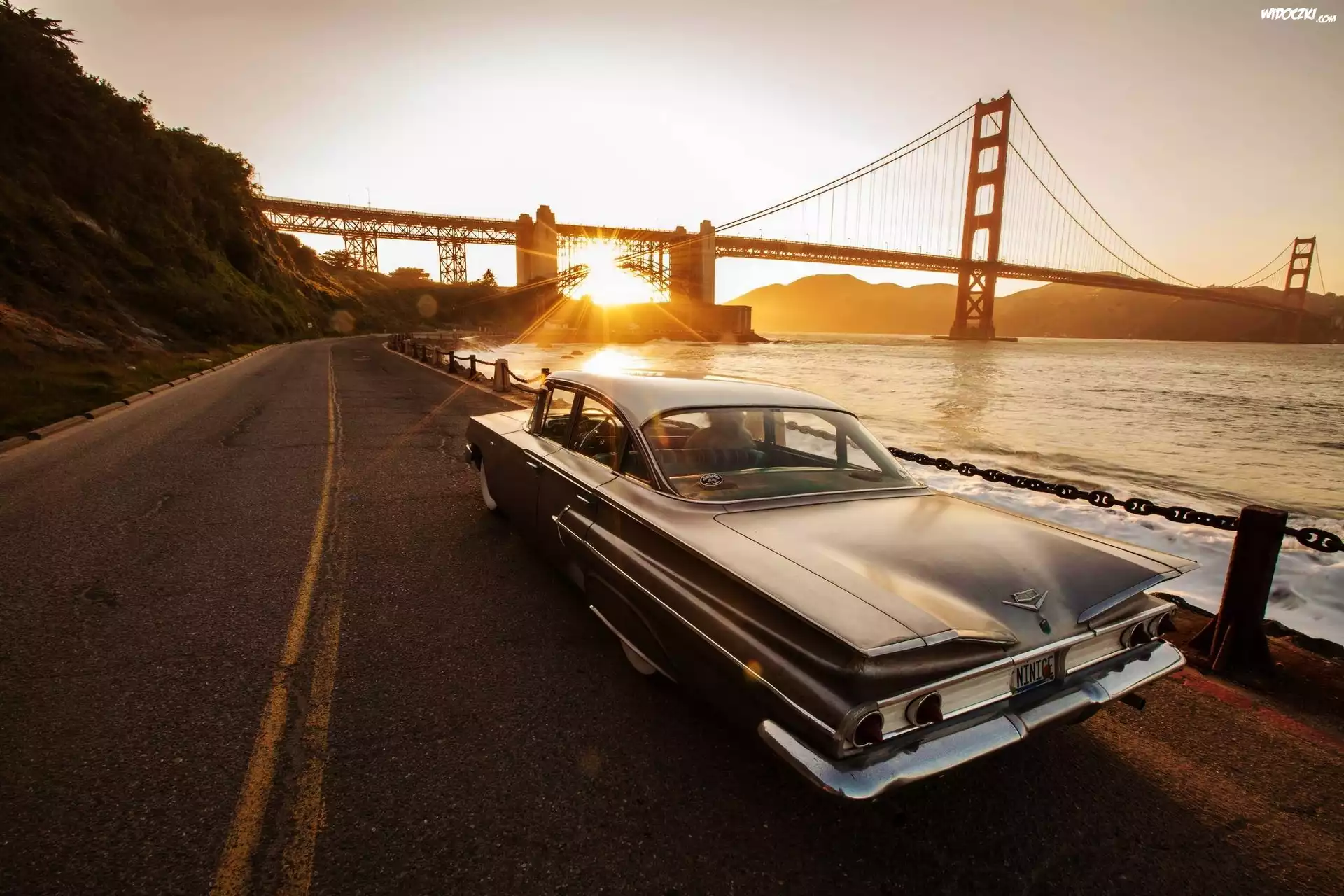 Zdjęcia, Zachód, Słońca, Cadillac, Most, Droga
