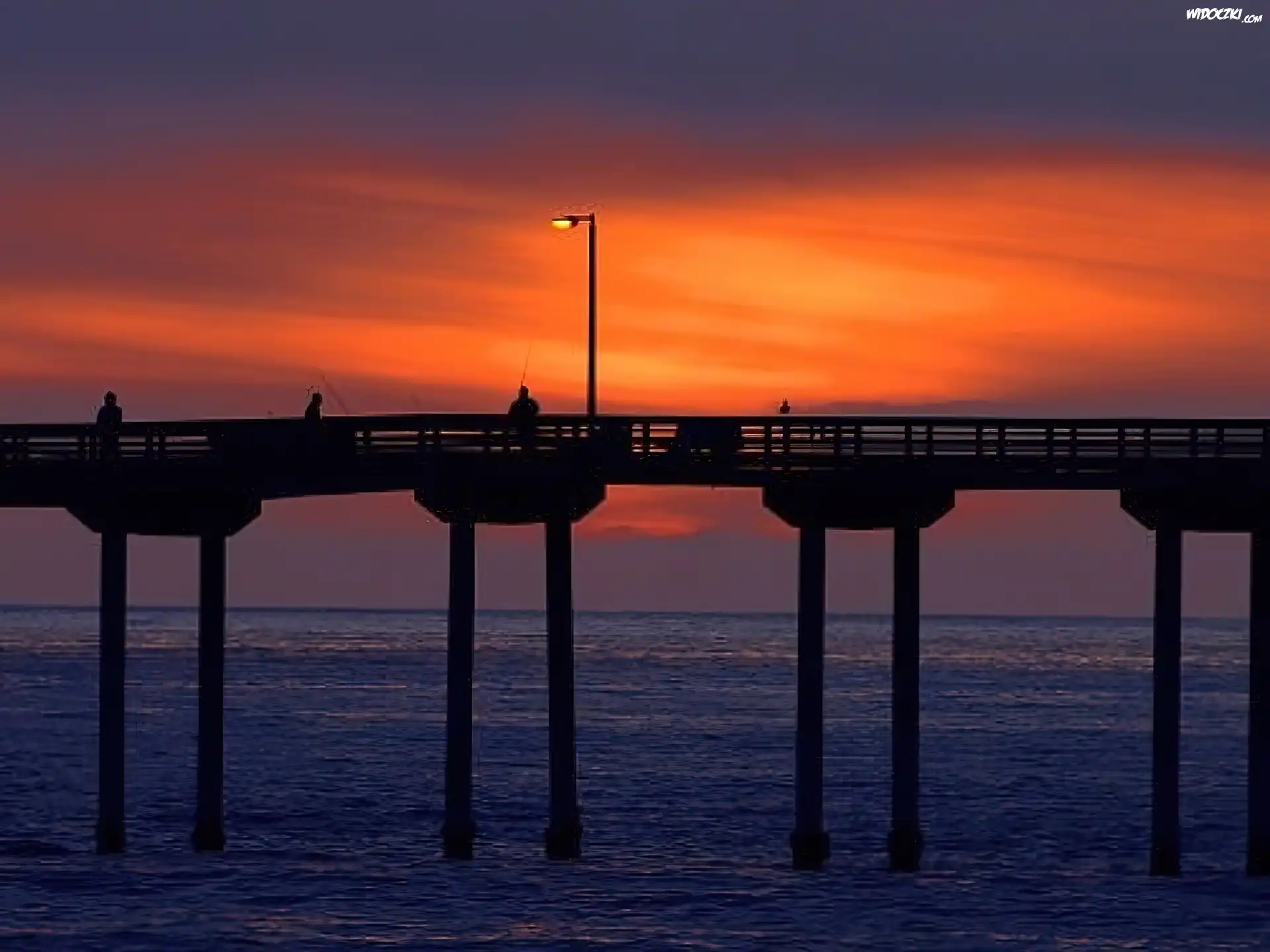 Zdjęcia, Zachód, Słońce, Most, Wędkarze