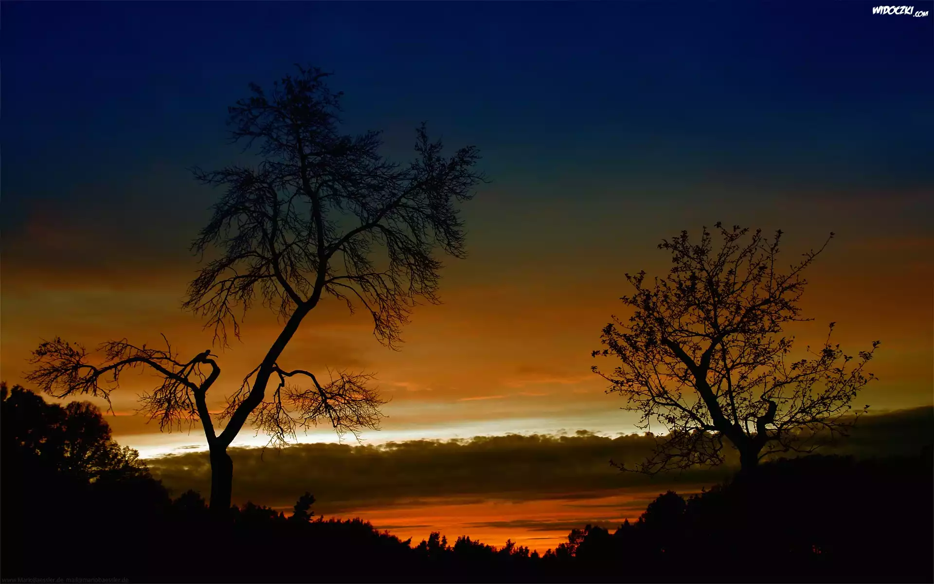 Zdjęcia, Zachód, Słońca, Niebo, Drzewa